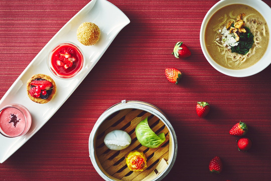 ストリングスホテル東京インターコンチネンタル、ザ・スコア・ダイニング、中国料理「チャイナシャドー」は、今が旬のいちごをつかったディムサム(飲茶)とチャイニーズスイーツが堪能できる人気のディムサムランチセットをご提供いたします。
