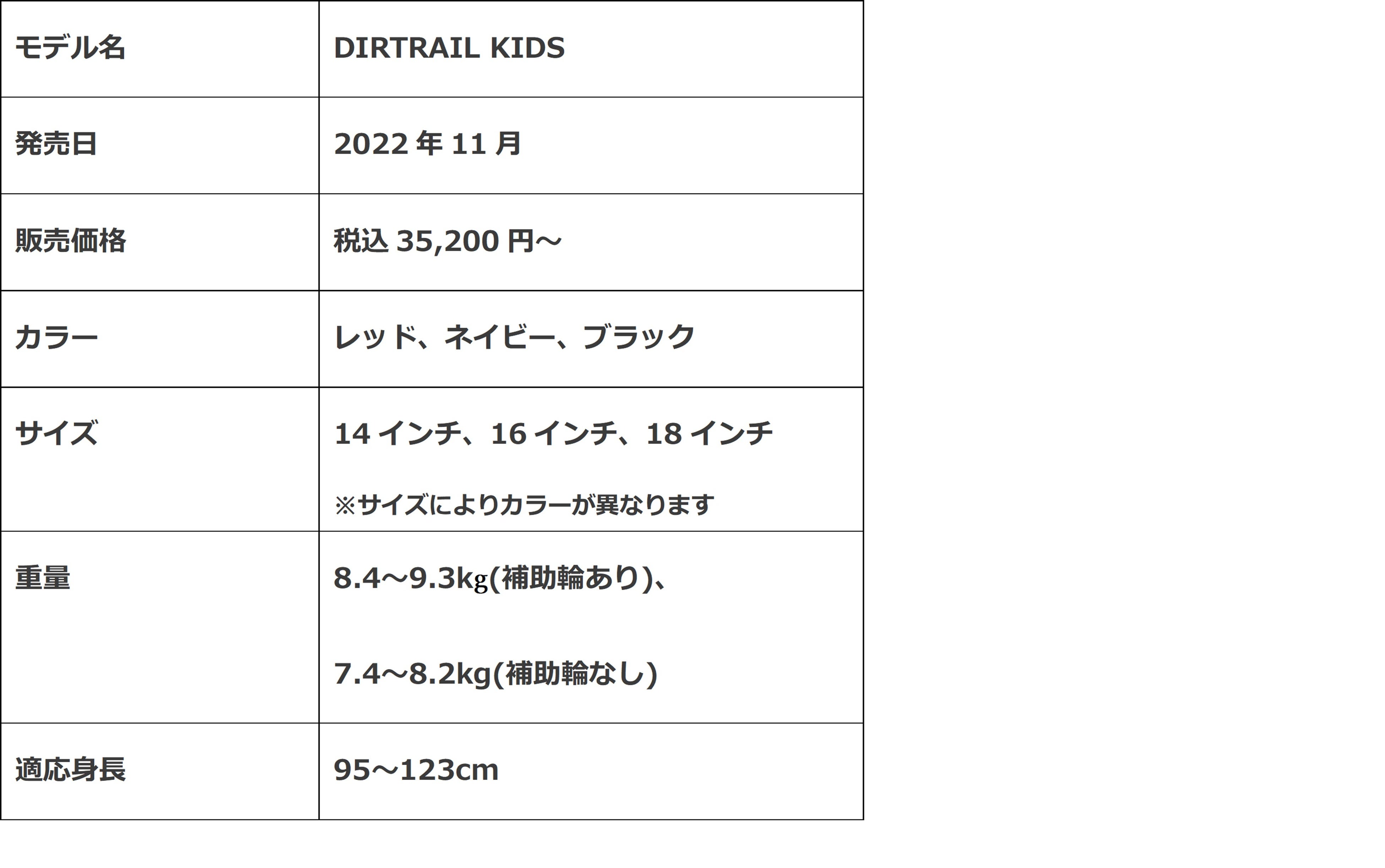 - ダイワサイクルプライベートブランド DIRTRAIL KIDS商品概要