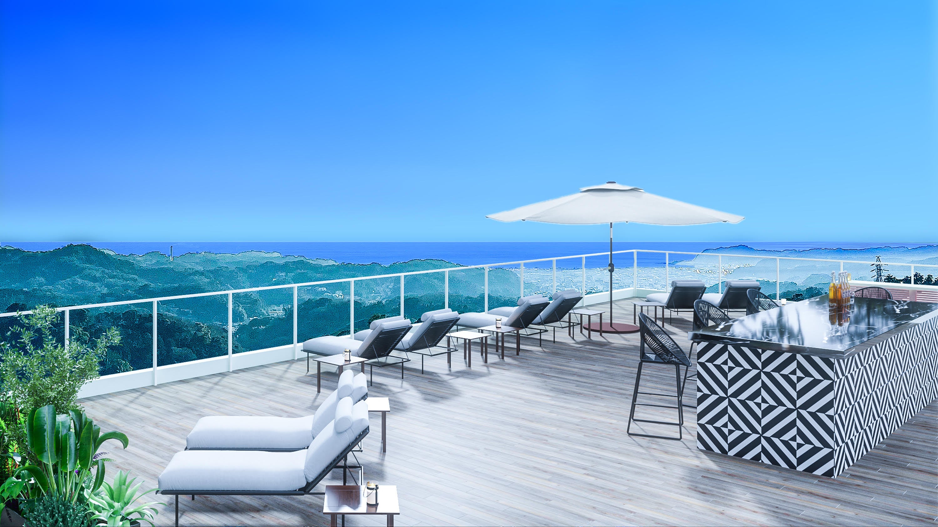 日本初※のリモートワーク専用スペースやフィットネスルームを備え「サードプレイス」にふさわしい新しい価値観を提供している鎌倉カントリークラブのフルリニューアルで、屋上テラスを新設。鎌倉の海と富士山を一望できる贅沢なくつろぎ空間で、お茶や軽食を提供致します。