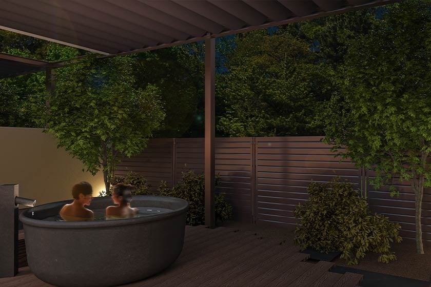 露天風呂付客室を新設いたします。霧降高原の自然を感じながら、プライベートな空間でお好きな時に湯あみをお楽しみいただけます。