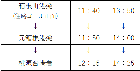 ・桃源台港へお帰りのお客さまは海賊船の定期便をご利用ください。