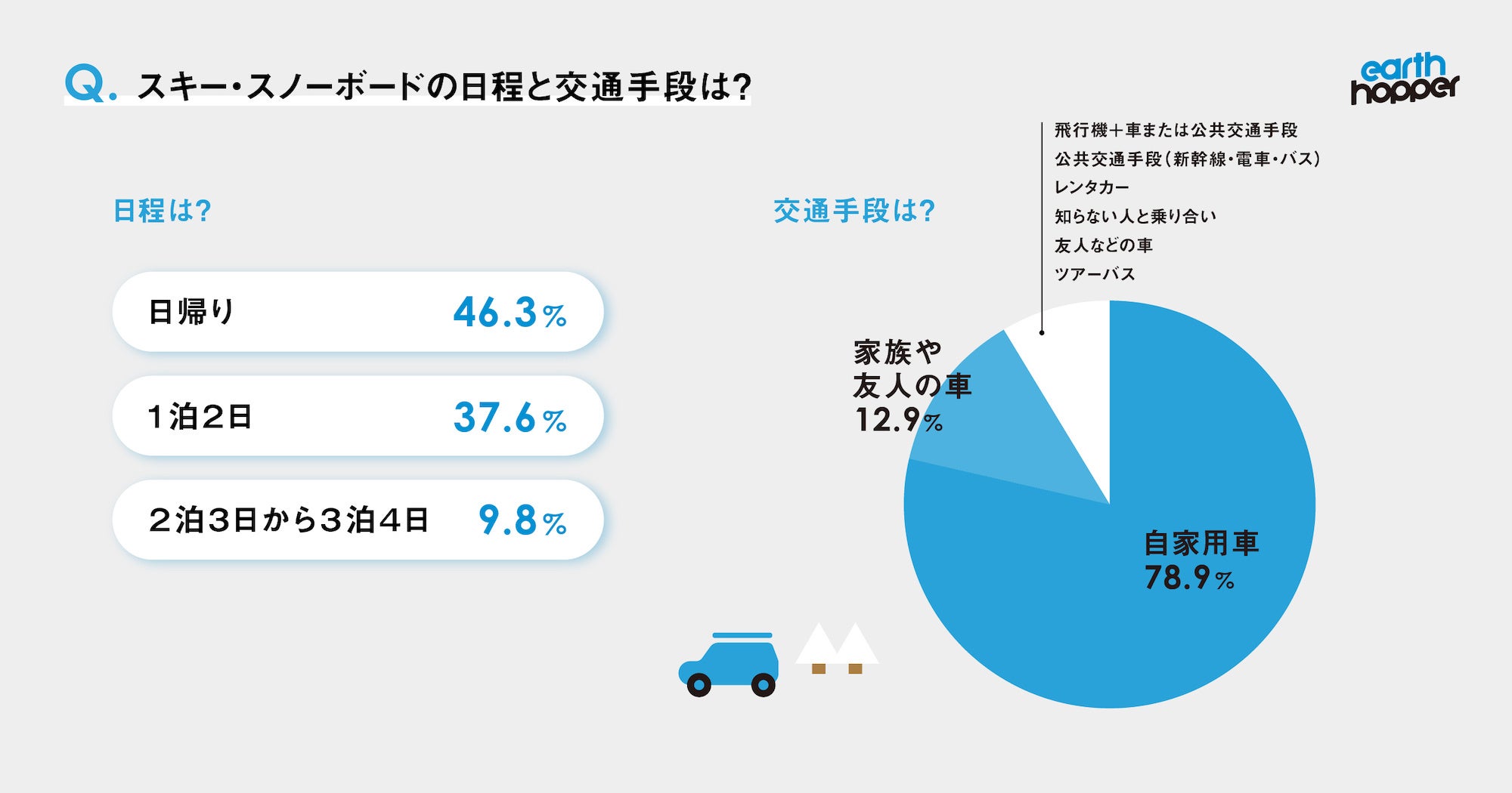 - 調査対象:アースホッパー会員(スキーヤーもしくはスノーボーダー)