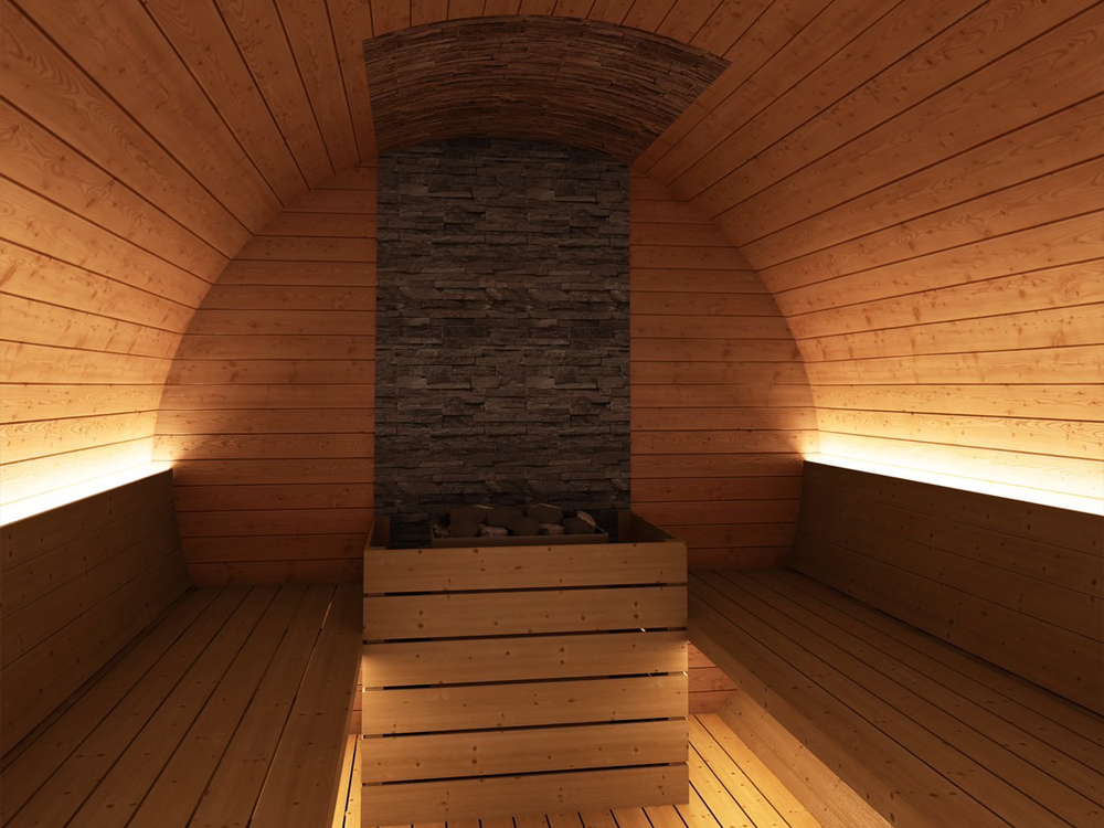 国産の木材のみを利用した木材本来の持つ薫りを感じる酒樽を活用した心地よいタルサウナです。