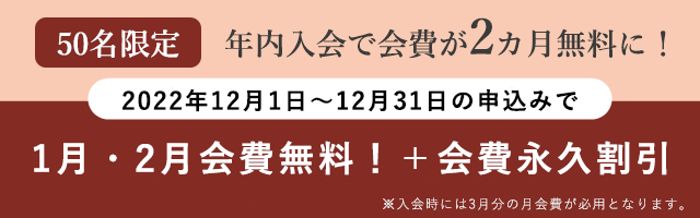 12月に会員利用(サブスク)をお申込みいただくと、1月と2月の月会費がなんと2カ月分無料に!