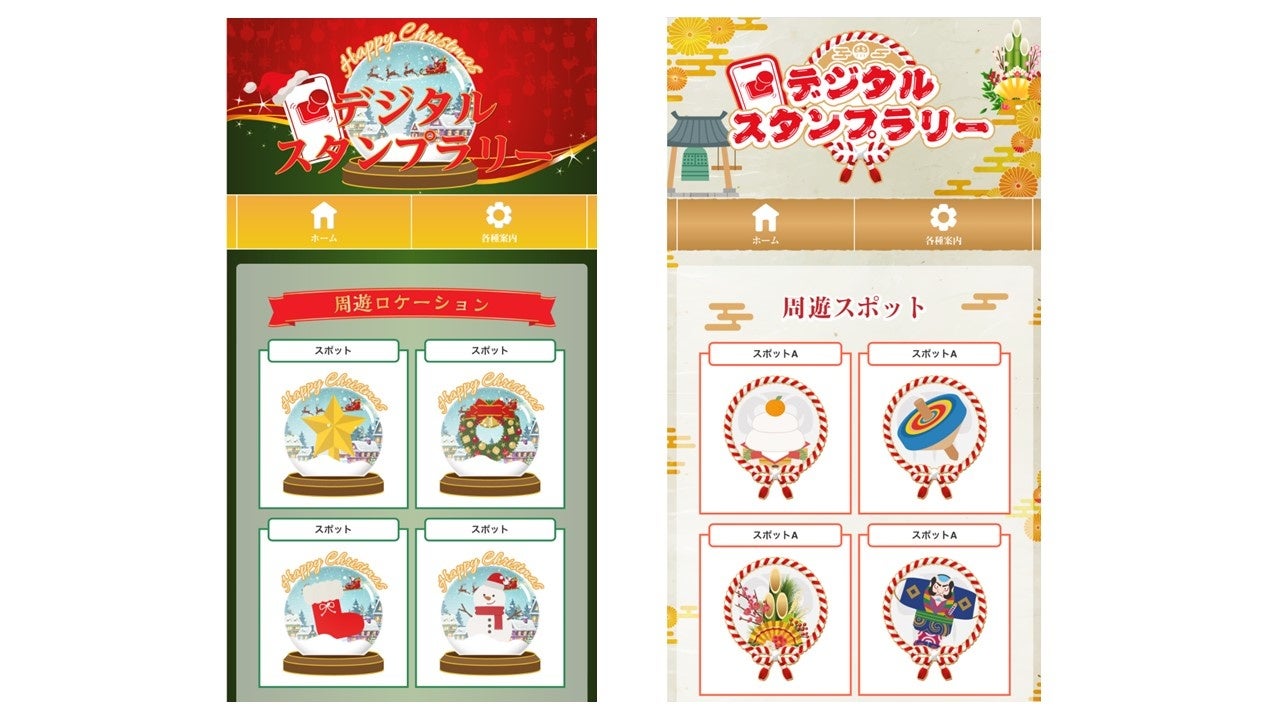 デジタルスタンプラリー制作支援サービス「go to town」は、新しいテーマテンプレート【クリスマス】【お正月】をリリースいたしました。