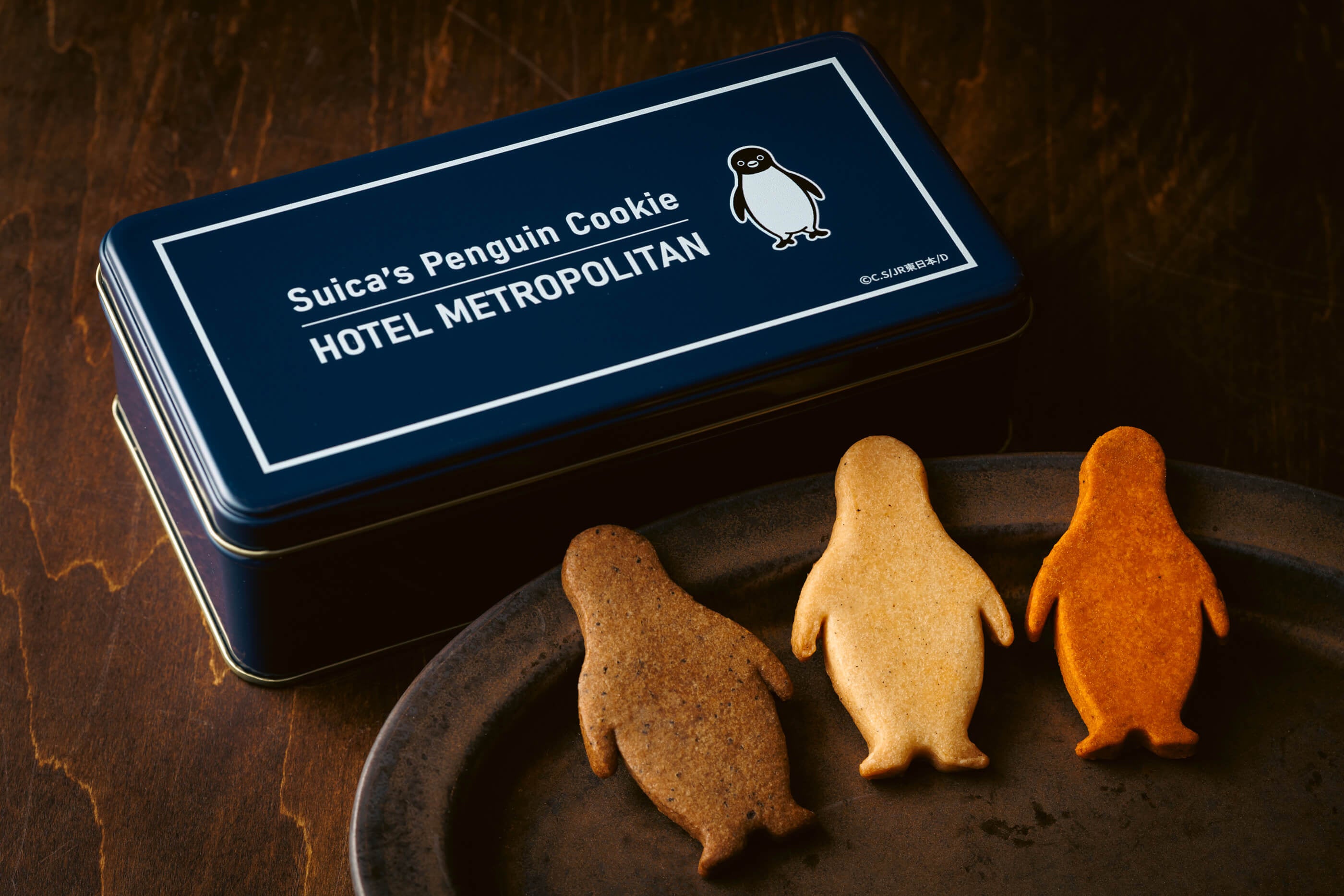 ホテルメトロポリタン(池袋)で期間・数量限定で販売している「Suicaのペンギン」クッキーシリーズは毎回ご好評につき完売しています。一つひとつ手作業で作り上げるホテルメイドのクッキーを多くのファンの皆様にお楽しみいただけるよう、メトロポリタンホテルズの対象3ホテル(池袋、エドモント、長野)にて、「Suicaのペンギン」の同じシルエットで、各ホテルのパティシエがそれぞれ考案した、お酒にも合う大人向けのクッキーの詰合せを、リレー販売いたします。