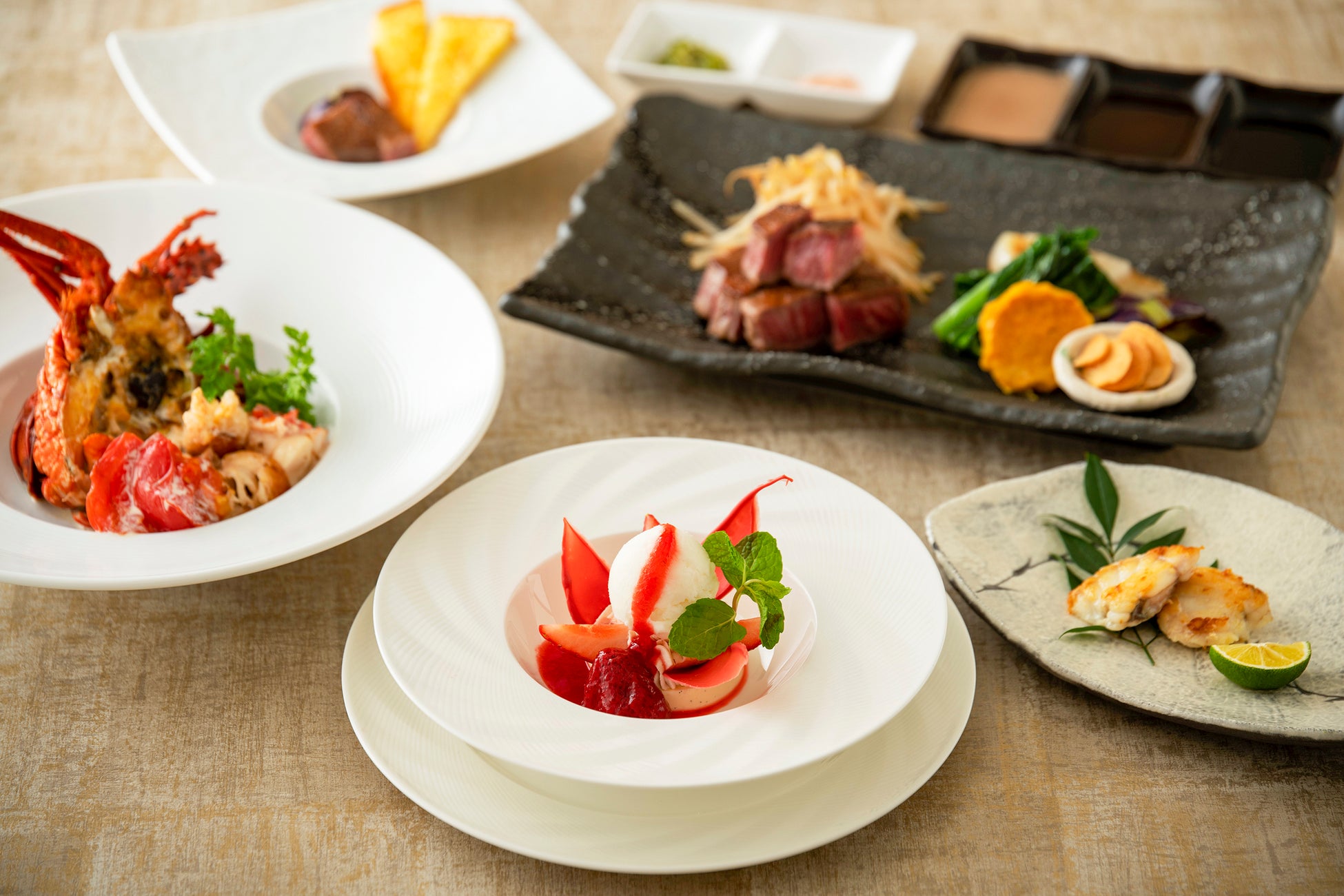 伊勢海老やあんこう、黒毛和牛など贅を尽くした食材をご堪能いただけるディナーコース。コースの最後には、いちごを使ったパティシエ特製のスペシャルデザートをご用意します。