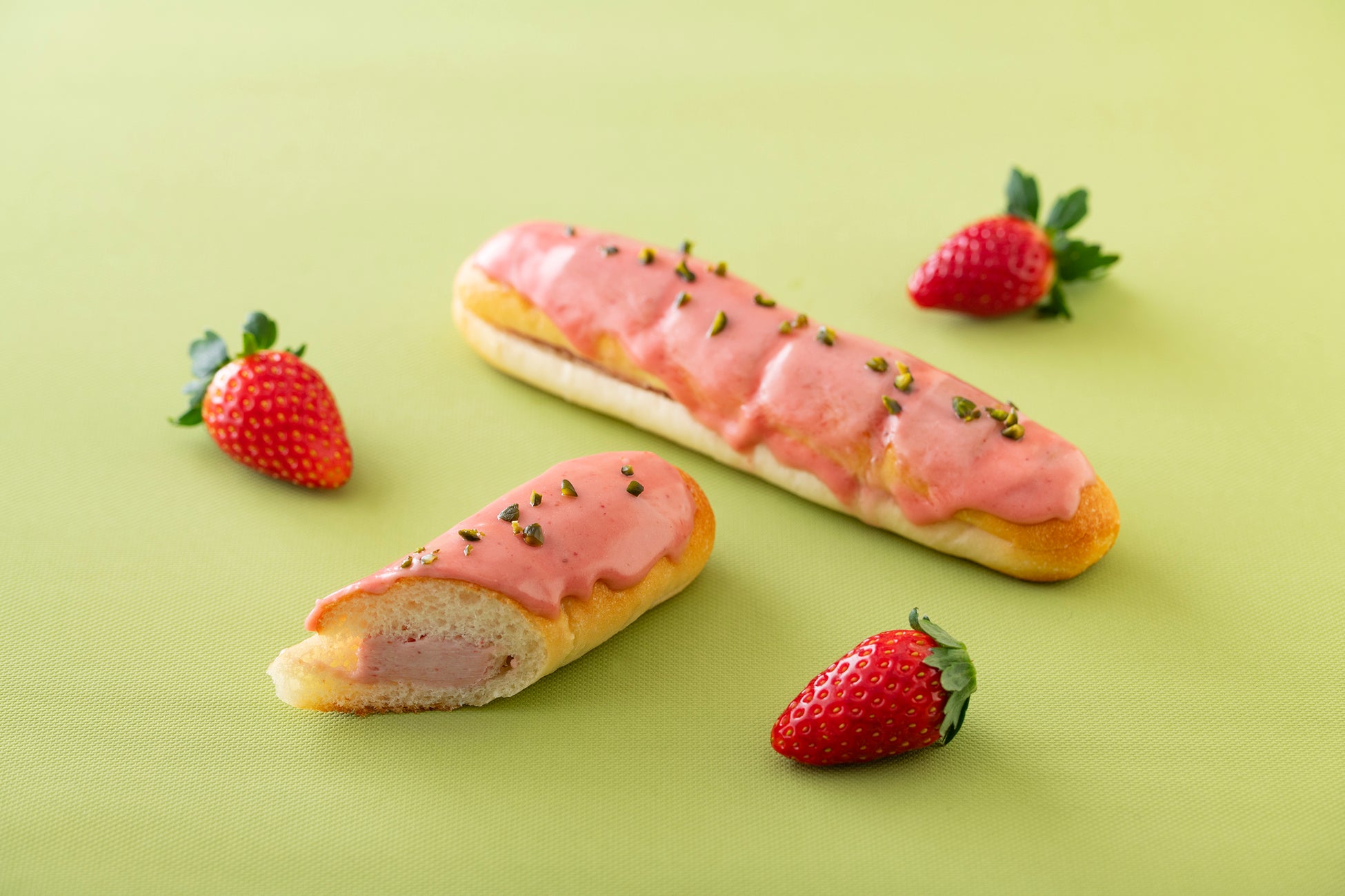 練乳入りのバタークリームに濃縮したいちごのピューレを混ぜ合わせたミルキーなクリームをサンドし、いちごのフォンダンで仕上げた香り高いスティックパンです。