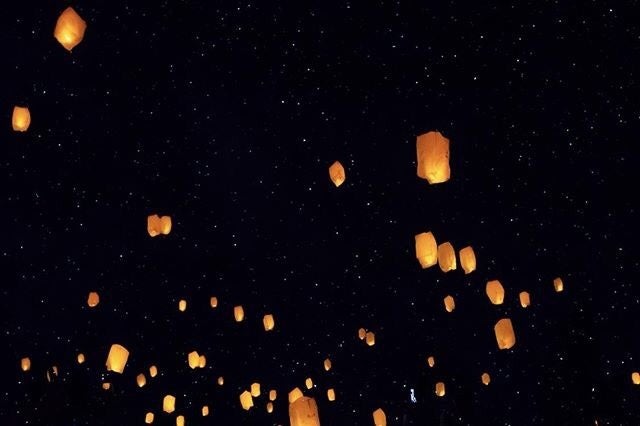18:00:みんなで一斉にスカイランタンを空に浮かべます。
