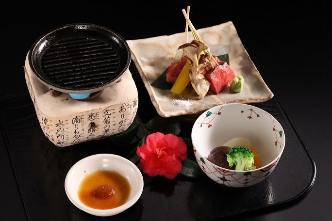 山形県産 米沢牛串ステーキと季節野菜の炊合せ