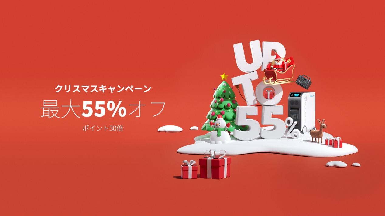 クリスマスキャンペーン期間中、BLUETTI公式サイトにおいて、一部人気商品が最大55%オフで購入できます。また、一定額以上ご購入いただくと、金額に合わせたプレゼントをご用意しています。