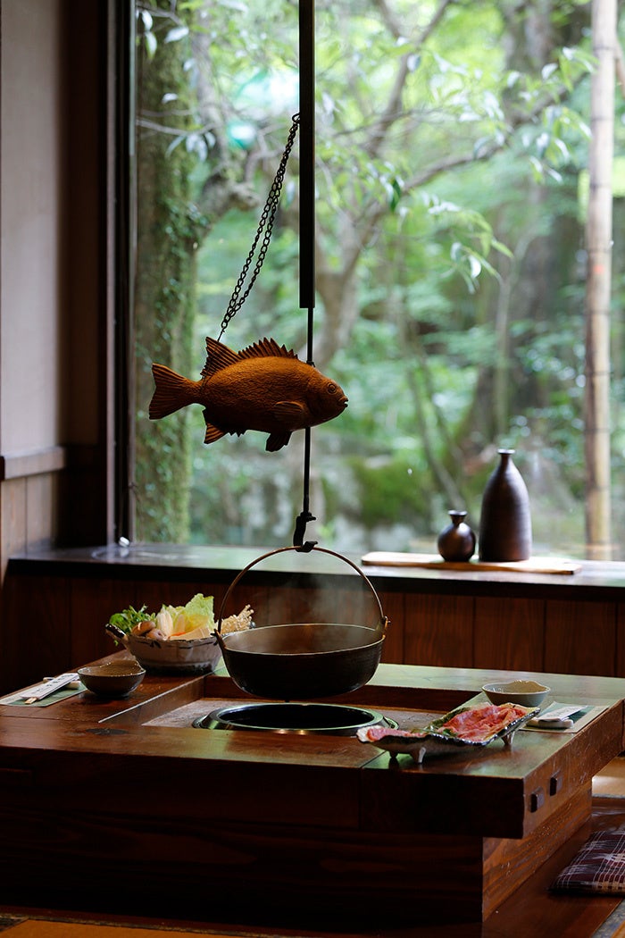 開湯1300年の歴史を持つ源泉掛け流しの温泉があるお宿「海潮荘」。自慢の露天風呂は、四季折々の自然を楽しめます。お宿のレストランでは、囲炉裏を囲んで中庭を眺めながらゆっくりと、のどぐろや奥出雲和牛などを味わうことができます。