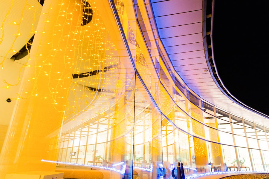 夕日が美しいことでも知られる島根県立美術館でも、イルミネーションが開催されます。窓に飾られた電飾が、美術館内を美しくアートな空間に彩り、クリスマスムードを演出します。期間中17:00からは館内の照明が一部消灯され、よりいっそうイルミネーションの輝きを楽しむことができます。