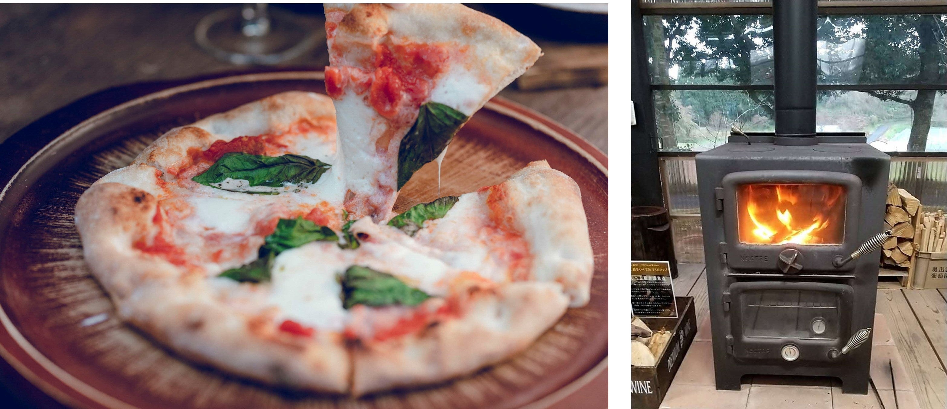 奥出雲にあるワイナリー「奥出雲葡萄園」。ワイナリーの敷地内には庭カフェがあり、ピザ等のメニューが自社ワインと一緒に楽しめます。また、冬になると4つの薪ストーブが登場し、お外でも暖かく過ごせます。