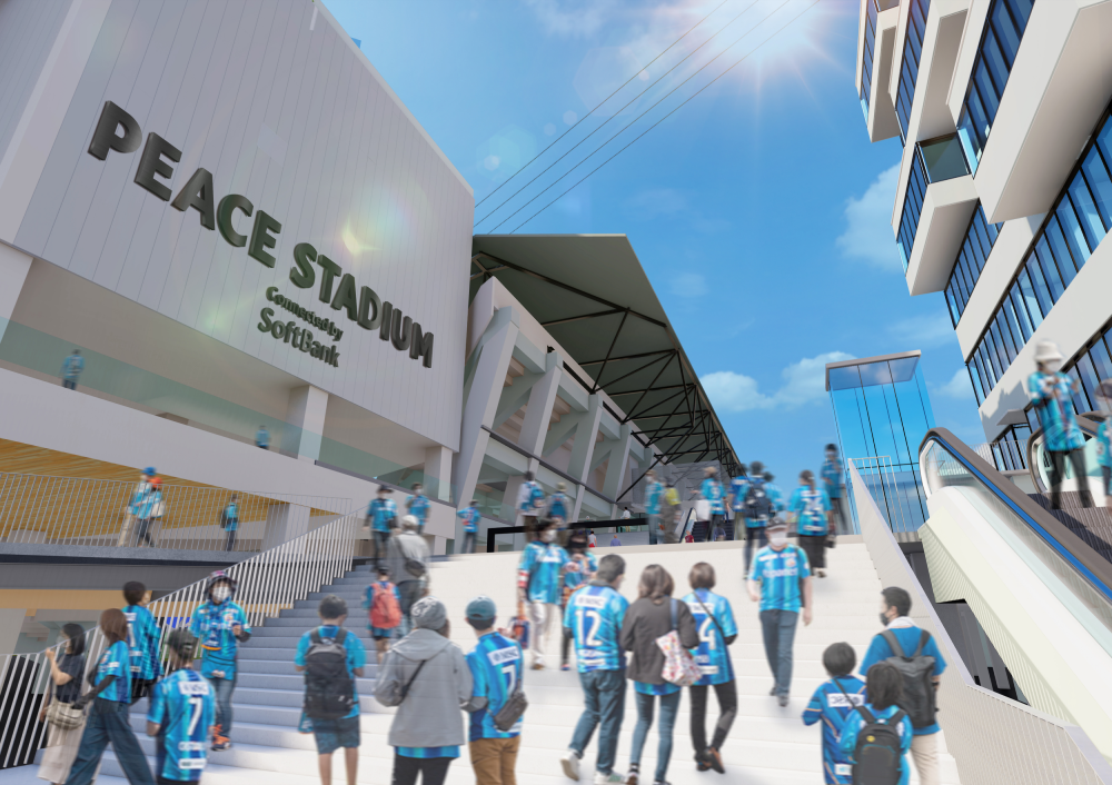 ジャパネットとソフトバンクは、長崎スタジアムシティの中心となるスタジアムから平和について発信していきたいという想いと、通信を土台に最新テクノロジーを駆使して人・モノ・情報などあらゆるものを繋ぐことで、新たな価値を創出する次世代スタジアムシティを構築したいという想いの下、スタジアムを「Peace Stadium Connected by SoftBank」と名付けることにしました。