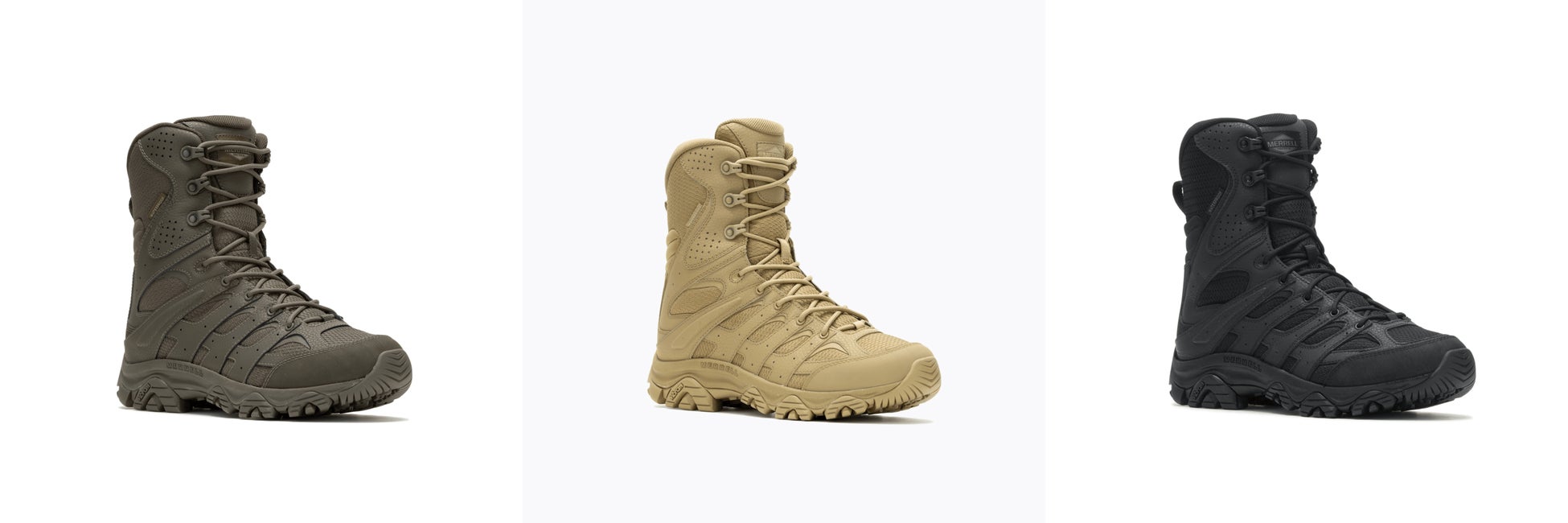 当アイテムは前作に続き、原宿のスニーカーショップ「KICKS LAB.」とMERRELL TACTICALがタッグを組み、KICKS LAB.原宿店、及びKICKS LAB.オンラインのみで限定発売します。また、前作同様、ハイカット(8インチ)、ミッドカット、ローカットによる全3型を取り揃え、定番のトリプルブラック、ワントーンのダークコヨーテカラーと共に、ミリタリーギアとして圧倒的な人気を誇るダーク オリーブが新色として、全パターンで登場。