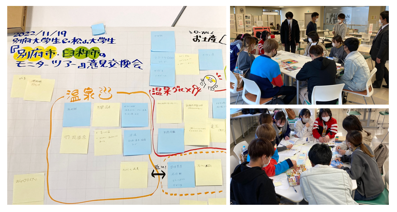 本プロジェクトの旅行商品造成には、愛媛県松山市の大学生が携わっています。モニターツアーの前には別府市の大学生とルートについて意見交換会を行いました。
