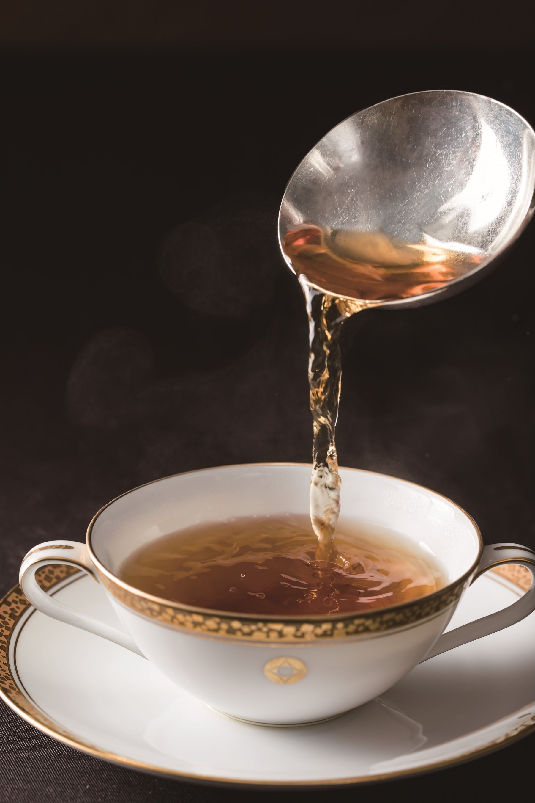 また創業から受け継がれる伝統のコンソメスープは、素材の旨味が凝縮された逸品。牛肉、香味野菜、スパイスなどをじっくりと煮込み、それを一晩寝かせる事でコクが生まれ、味の深いスープとなります。