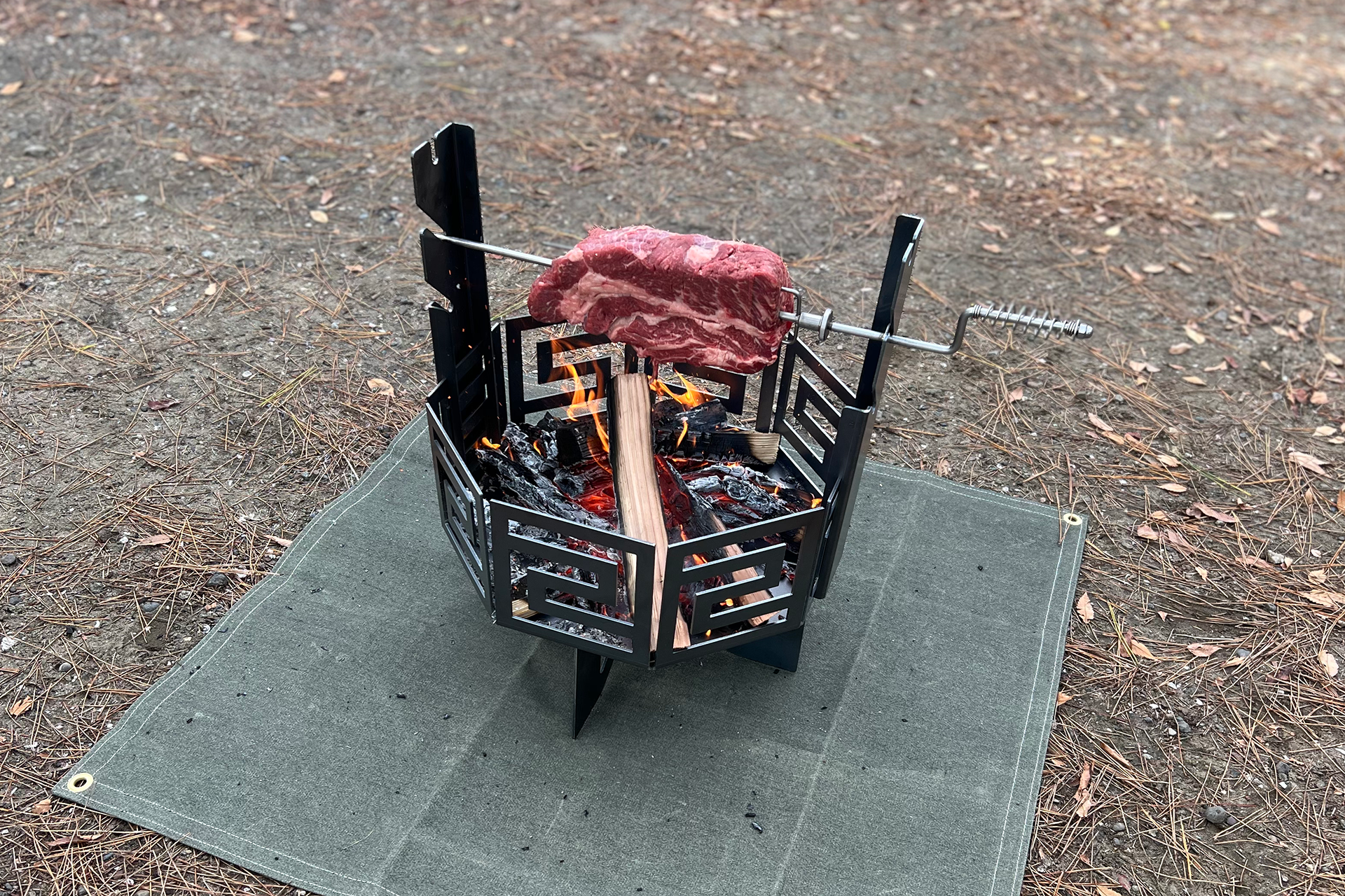 オクタゴンでは、誰でも大きなお肉を簡単に焼くことの出来る最強のキャンプギアを作りました。用意するのはお肉と薪と『インフィニティ肉焼きセット』だけです。『インフィニティ肉焼きセット』があれば、誰でも簡単にお肉が焼けて、誰でも簡単にキャンプ場でヒーローになれます。