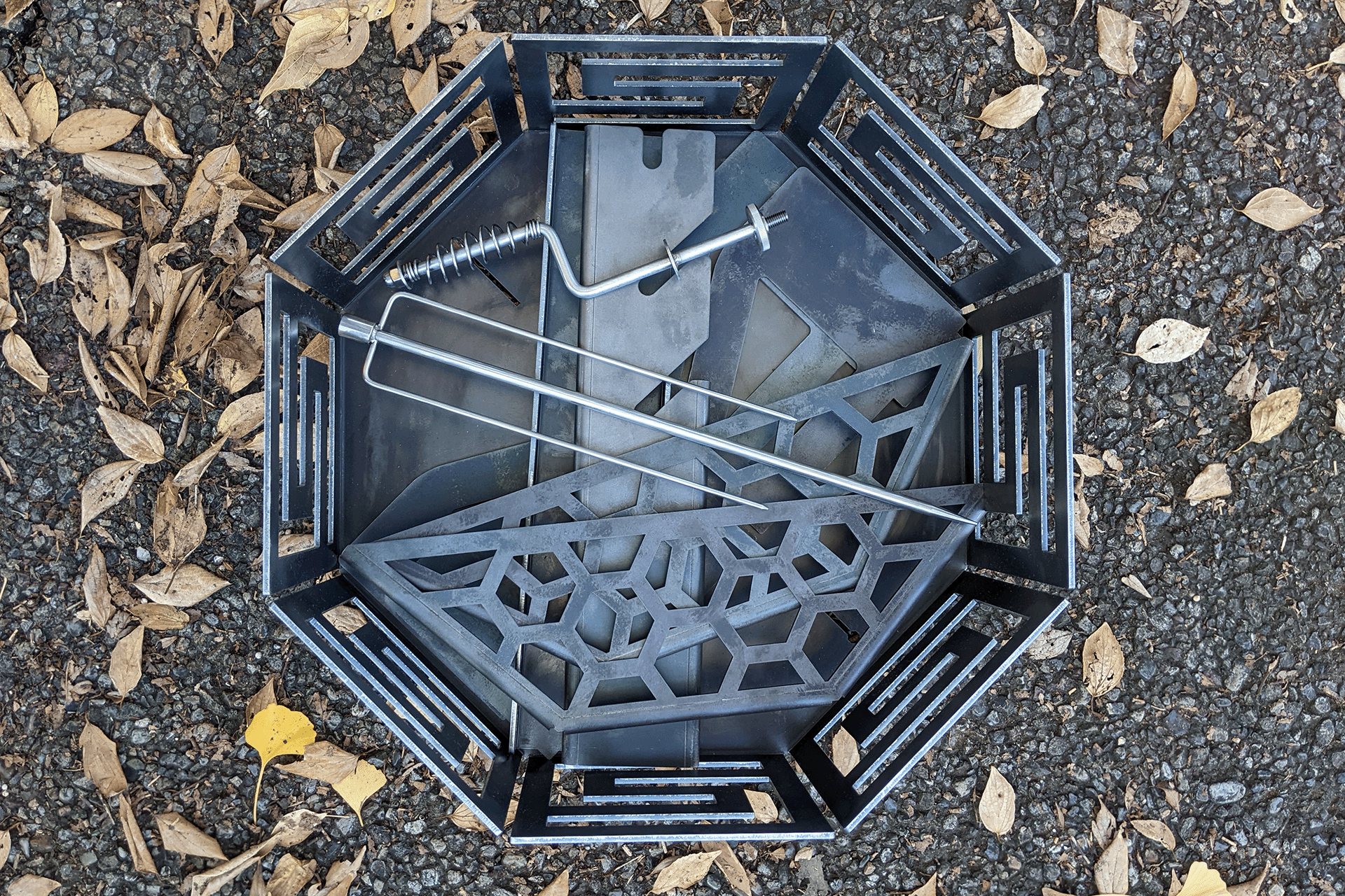 インフィニティの構造はシンプルなプレートの組み立て式なので、初めての焚き火でも誰でも簡単に組み立てられます。ヒンジも複雑なギミックもありませんので分解もメンテナンスも簡単です。