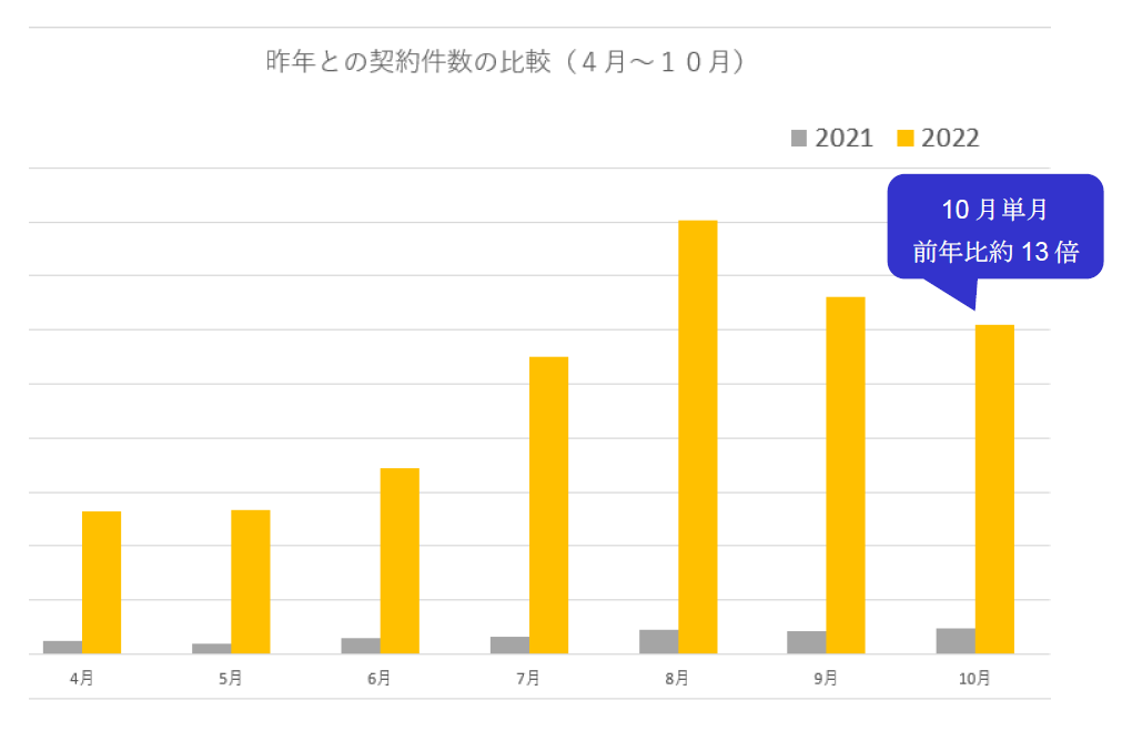 新型コロナウイルス感染症の影響で大幅に海外旅行者が減少していた昨年と比較して、10月単月では約13倍のご加入件数となっており、海外旅行の需要も回復しつつあることがわかります。