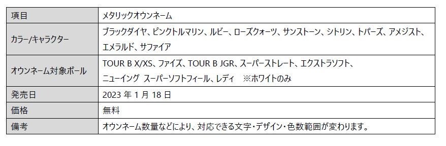 ブリヂストンスポーツ株式会社は、ゴルフボールのオウンネームサービス※1を拡充し、当社初となる「メタリックオウンネーム」と好評の「サンリオキャラクターオウンネーム」への取り扱いキャラクターの追加を2023年1月18日から開始します。