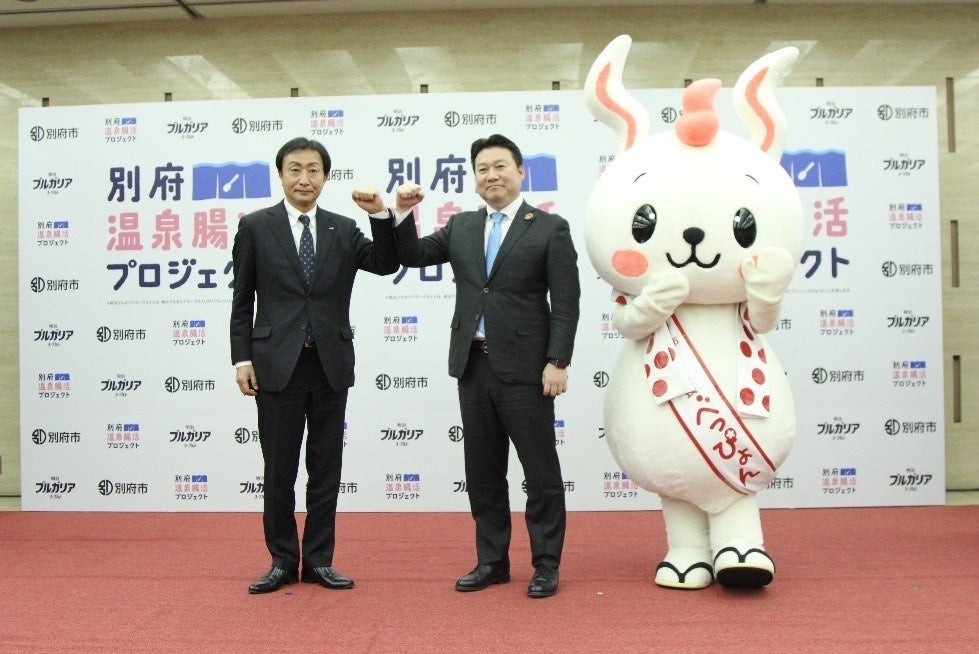 株式会社 明治(代表取締役社長:松田 克也)と大分県別府市(市長:長野 恭紘)は、温泉で有名な別府市と明治の主要商品である「明治ブルガリアヨーグルト」にて、“温泉×ヨーグルト”による新・おなか健康習慣『別府 温泉腸活プロジェクト』を開始しました。12月19日(月)よりWebサイトを公開するほか、市役所や温泉施設、スーパーマーケットの店頭など、市内30カ所以上の拠点において、温泉腸活入浴法などを記載したポスター貼付やリーフレット配布などを行い、別府市民に広く情報発信してまいります。