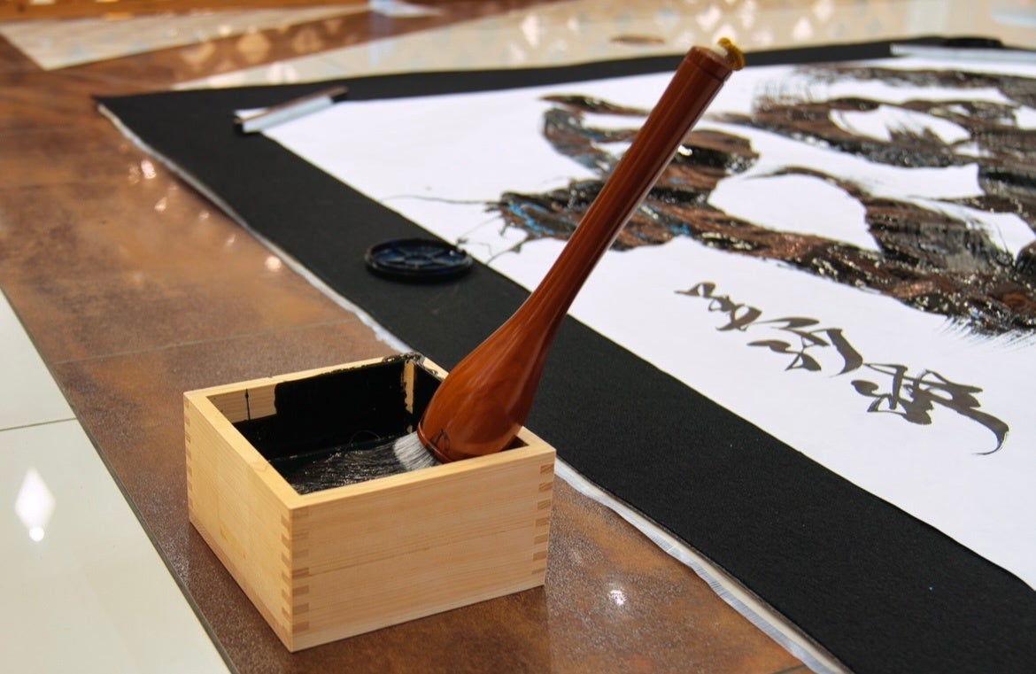 皆様にも書初めをご体験いただけます。書道家 美紗稀氏ご指導のもと、100cm×150cmの大きな書初め用紙にお好きな漢字一字とお名前をモップ筆でお書きいただけます。作品は記念にお持ち帰りいただけます。