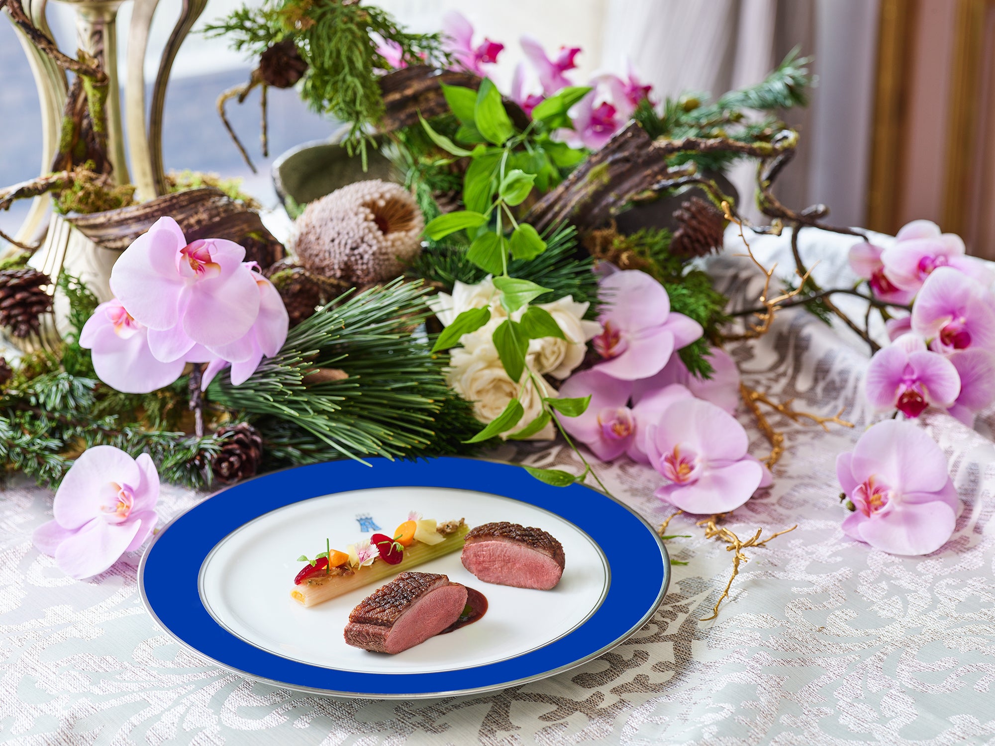 フランス・パリで440年の歴史を持つ老舗の世界唯一の支店「トゥールダルジャン 東京」では、1月4日(水)を除く、12月28日(水)~1月8日(日)の期間限定で、M.O.F.(フランス国家最優秀職人章)受章シェフ エグゼクティブシェフ ルノー オージエが手掛ける年末年始特別ディナーコースをご用意しております。シグネチャーメニューの「幼鴨のロースト」を含む、華やかな逸品の数々を、ルイ15世のロココ時代を再現した豪奢なダイニングルームで、初春の日本庭園を眺めながら、優雅にご堪能いただくことができます。