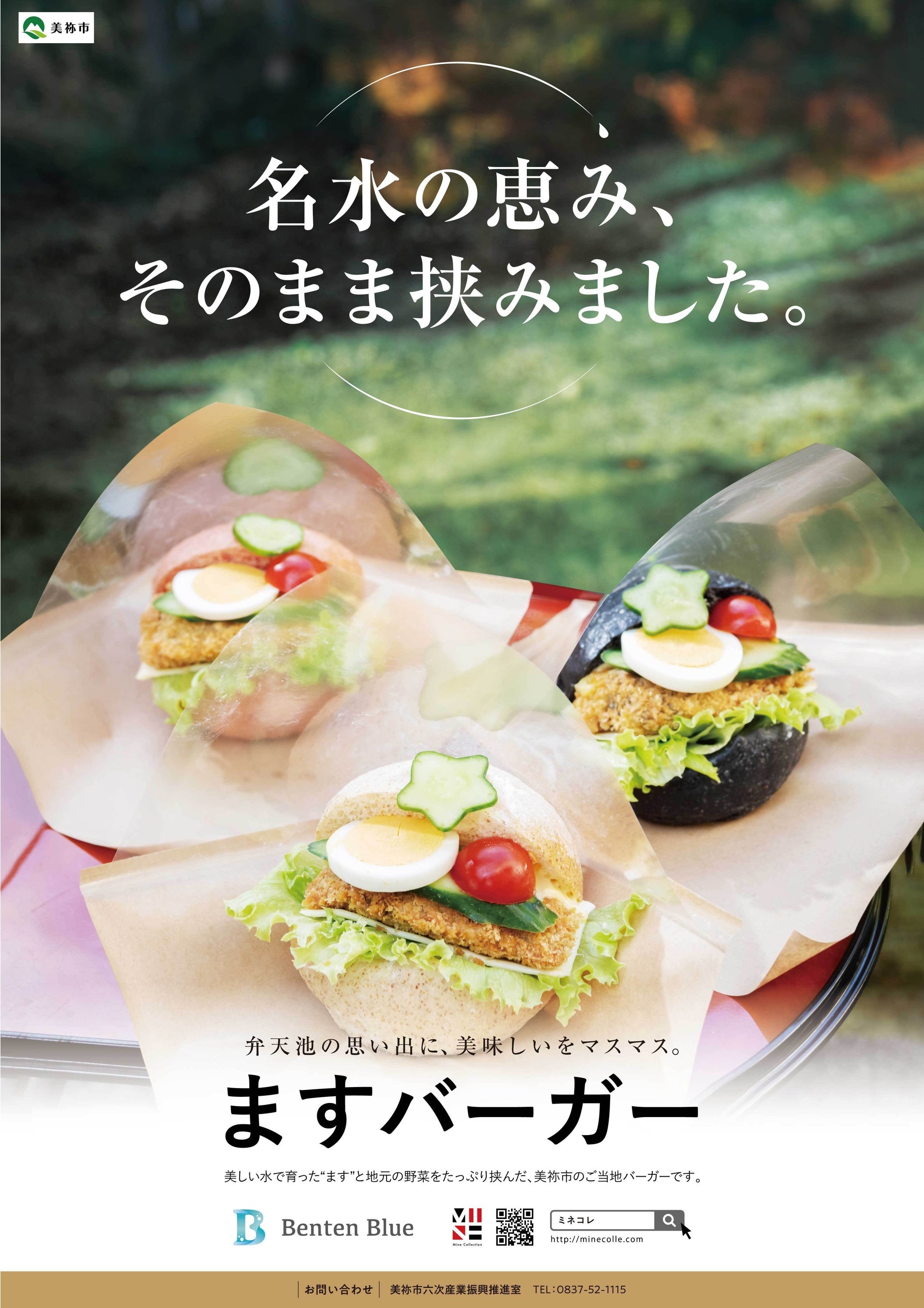 ▶︎「梶岡牛」と「ますバーガー」の広告ポスター