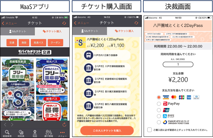 ②デジタルチケット(乗車券・クーポン券)の案内、発券・決済
