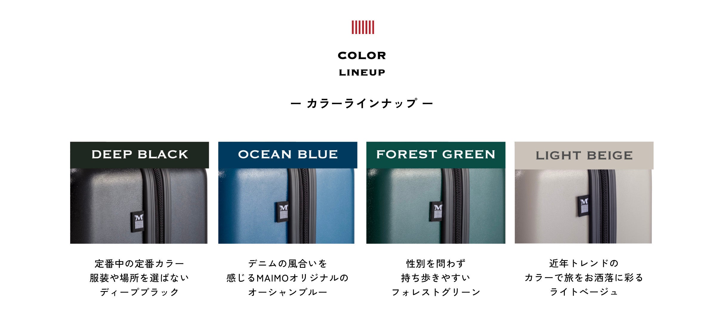MAIMOは、単なるスーツケースではなく一人ひとりのスタイルに合った「目的地までのパートナー」をお届けする日本発祥ブランドです。 スーツケース業界の常識に囚われない、珠玉の商品とサービスで ”お客様に寄り添うトラベルブランド” を目指しつづけます。