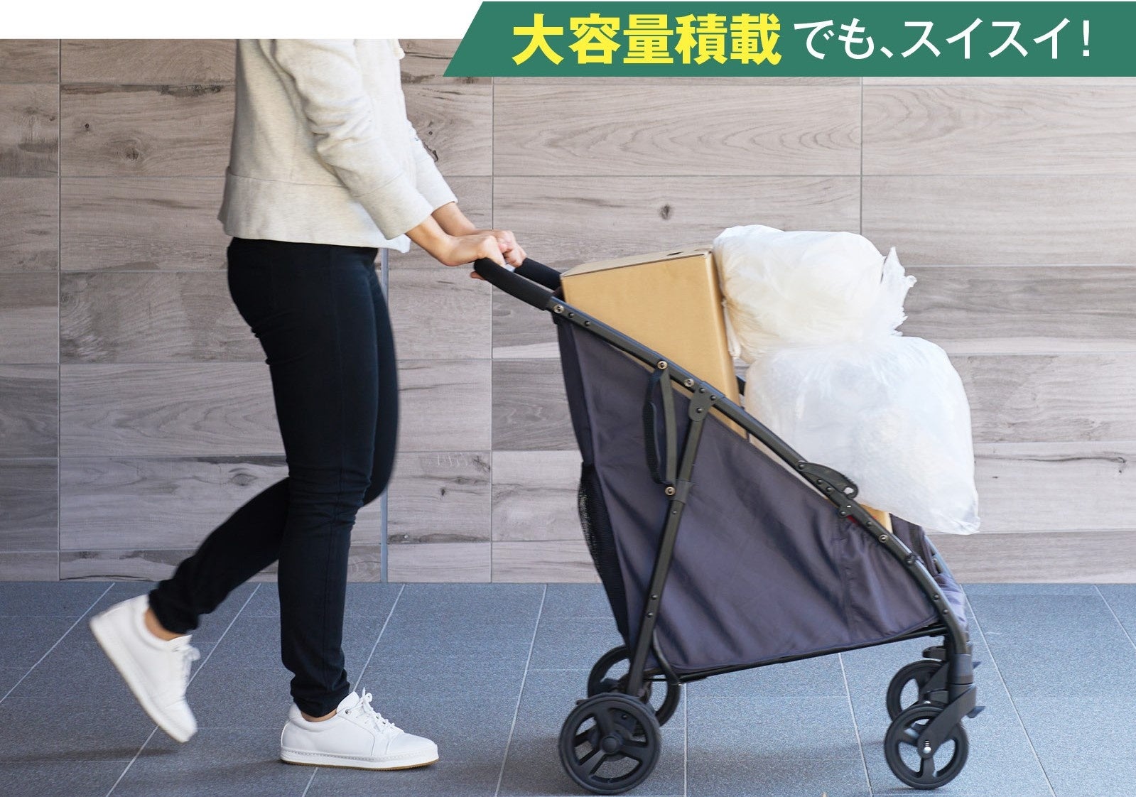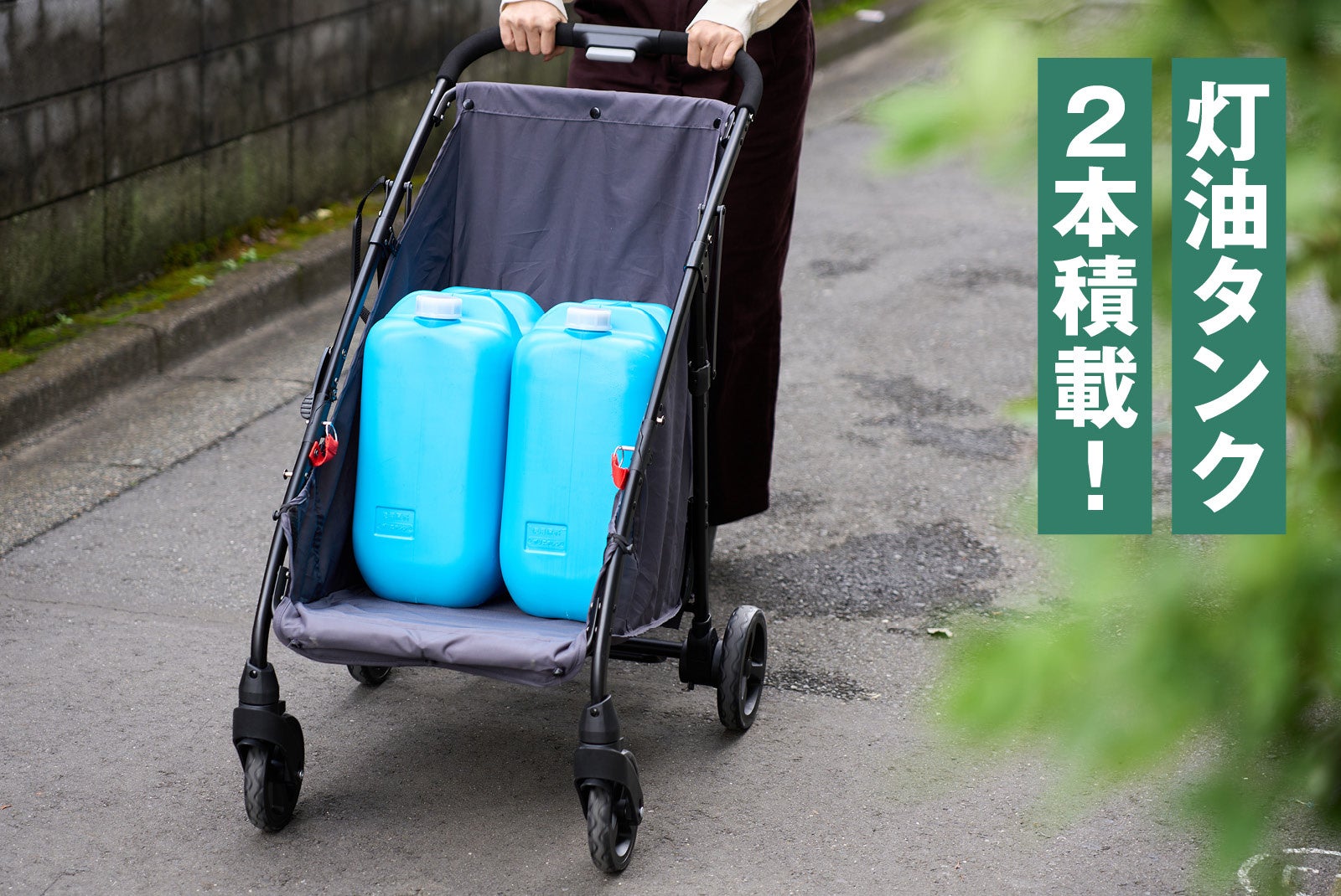 「荷物運びに何往復もしていて大変」「重たい荷物を運ぶのが面倒」「かさばる段ボールや資源ごみを台車で運ぶときにすぐに荷崩れしちゃう」こんな荷物運びの苦労が聞こえてきたのが、開発のきっかけとなりました。それらのお悩みを一発解決する「EcoCcaマルチカート」は、灯油タンクなら2本詰める幅広設計です。最大積載重量は50kgですが、そこまで載せても荷物運びがらくらくスムーズです。これまでの台車への不満を軽減する、まさに令和版台車革命です。