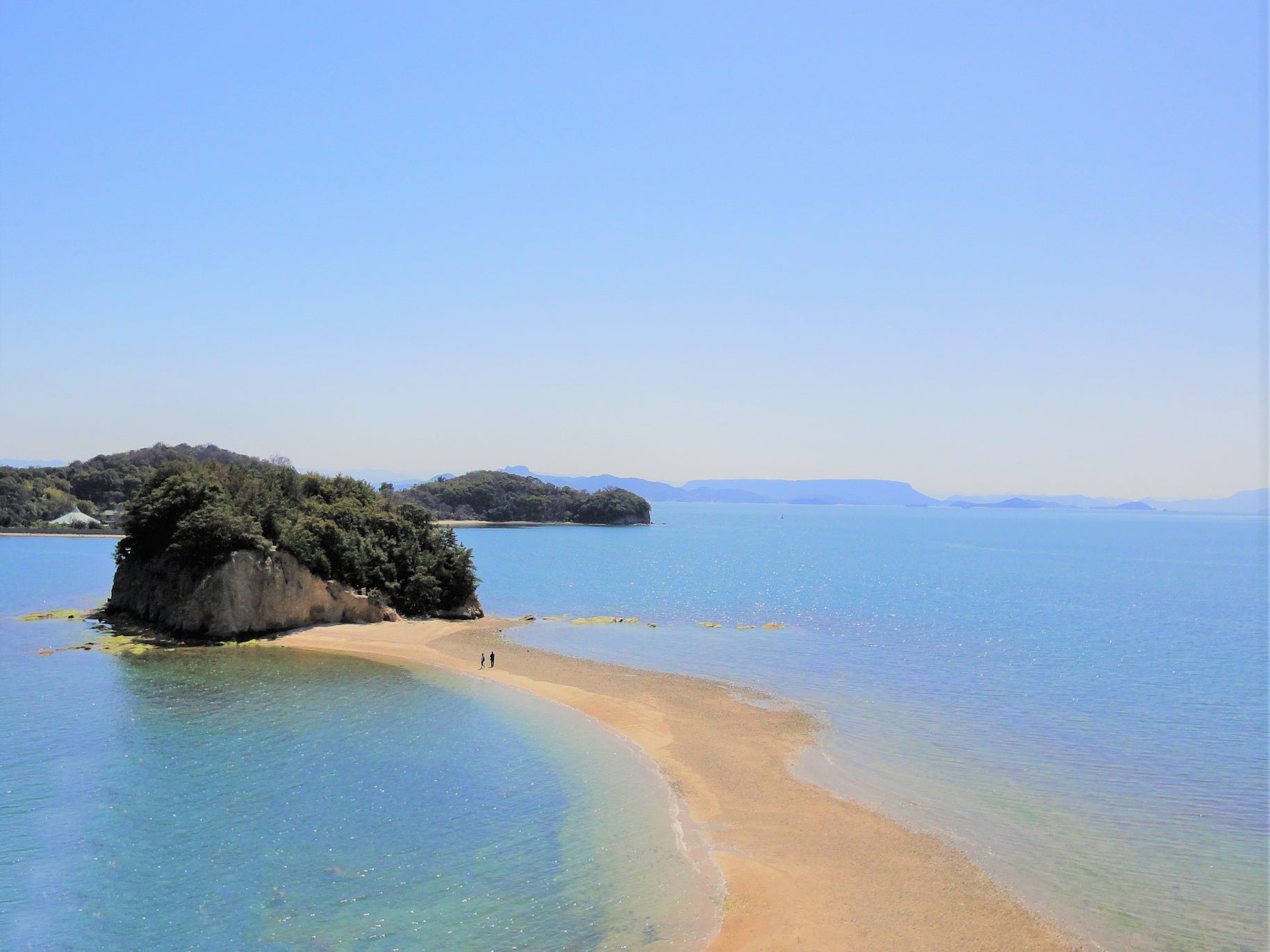 土庄町(とのしょうちょう)は、瀬戸内海の東部に浮かぶ小豆島の北西部に位置する町です。小豆島は、面積は約153㎢で瀬戸内海では2番目の大きさで、土庄町と小豆島町の2つの行政区でできています。島でギネス世界記録に認定された世界で一番狭い土渕海峡、特産品の手延べそうめんや、豊島石などでも知られています。豊かな自然と多くの特産品を有し、年間約110 万人の観光客が訪れる観光地です。小豆島の中心地で高松や岡山からの船が着く港町。港のバス乗り場近くでは、『二十四の瞳』に登場する大石先生と12人の子どもたちのブロンズ像が観光客を迎えます。小豆島と前島の間にある運河のような「土渕海峡」は、最大幅は400メートルだが最も狭い部分の幅がわずか9.93メートルと、世界一狭い海峡として有名。弁天島から中余島、小余島を介して大余島まで、1日2回、引き潮のときにだけ現れる砂浜が「エンジェルロード(天使の散歩道)」、この砂浜を大切な人と手をつないで渡ると、天使が舞い降りて願いが叶うといわれています。