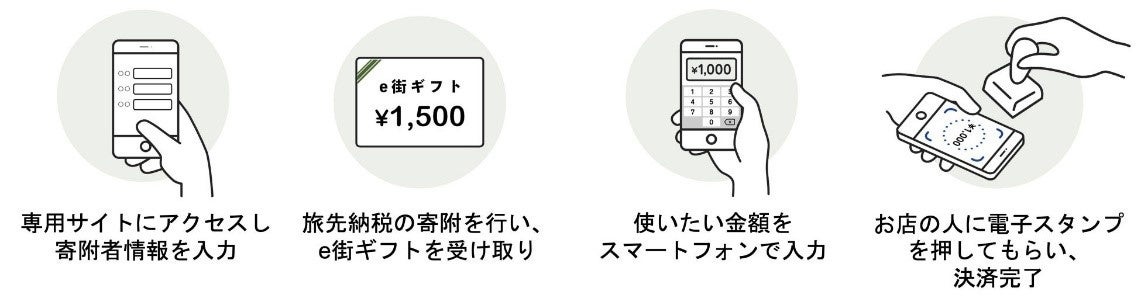「旅先納税®」とは、ギフティが提供する、スマートフォンから即座にふるさと納税(寄附)ができ、ふるさと納税の返礼品として地域で利用可能な電子商品券を即座に受け取り、市町村内のお店で使用できる仕組みです。また、ギフティが提供する「e街プラットフォーム®」(※2)の基本ソリューションである「e街ギフト®」システムとは、地域で利用可能な電子商品券の発行、流通を可能とするシステムであり、「旅先納税®」システムとあわせて土庄町に導入いただいております。土庄町ではこれまで、民間のふるさと納税ポータルサイト等を介した、現地を訪れることなく返礼品がもらえる郵送型のみのふるさと納税を受け付けておりました。この度の「e街ギフト®」と「旅先納税®」システムの導入により、「旅先納税®」の寄附者は電子商品券「とのしょうe街ギフト」(返礼品)を寄附サイトのマイページ内の「お礼の品」のページからすぐに受け取り、即時利用することが可能となります。