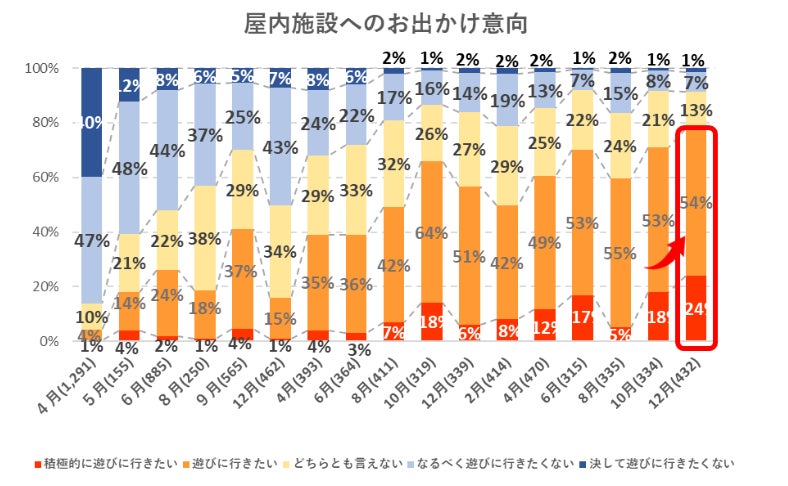 冬になり新型コロナの感染者も増加の傾向がありますが、年末年始のお出かけ先として、屋内遊び場が昨年より大きく伸びるなど、ユーザーの意識も少しずつ変化してきています。