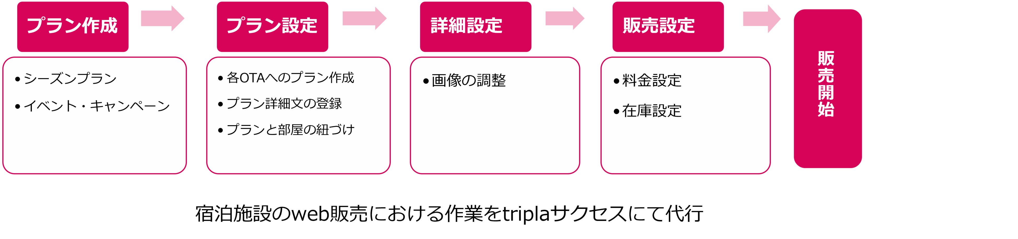予約システムの導入や運用に必要な労力をトリプラが補うことで、人手不足を解消するだけでなく、web販売設定に費やす時間を削減し、レベニューマネジメント業務や顧客サービス向上への取り組みに専念することが可能となります。