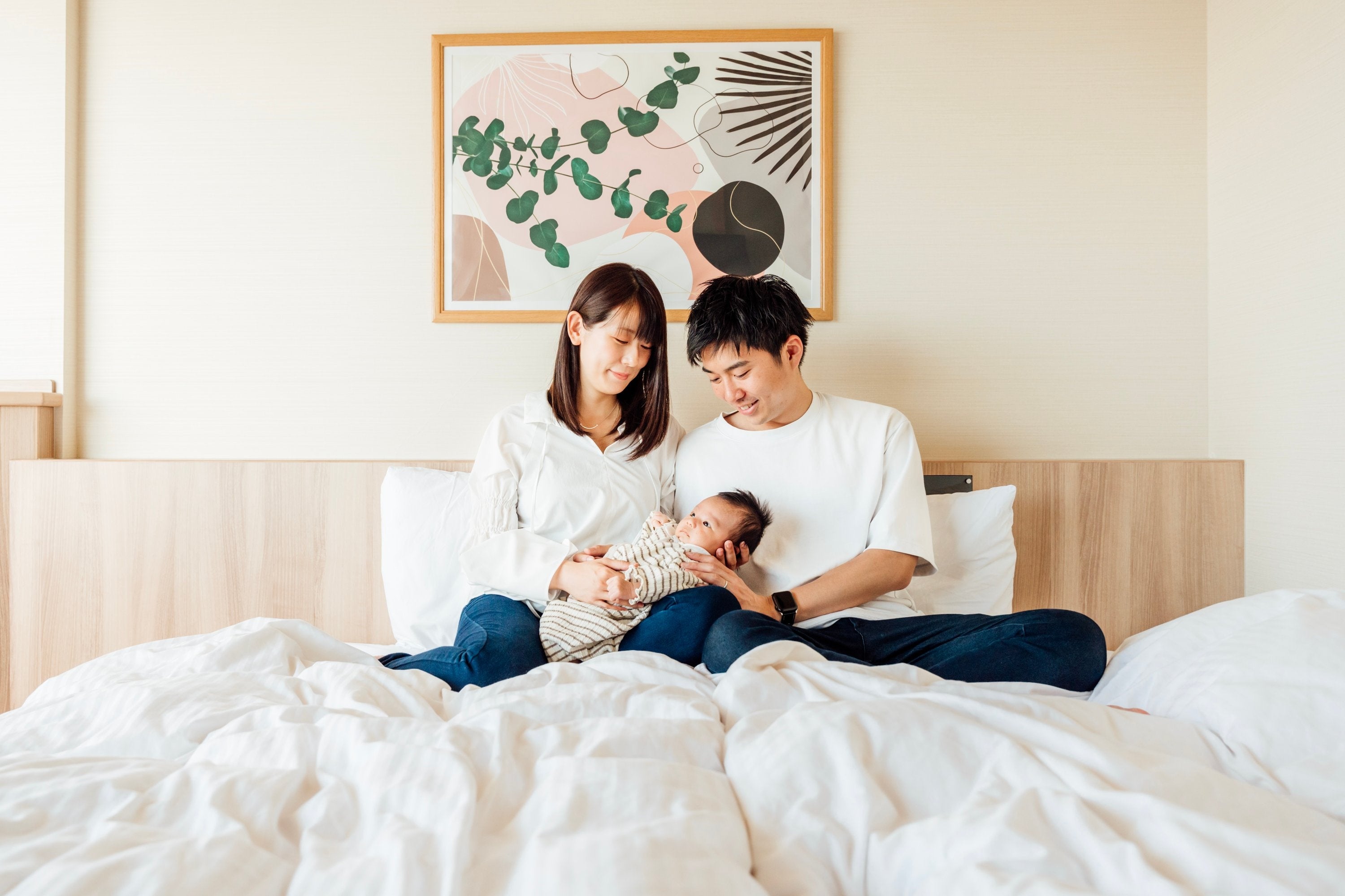 マームガーデン宿泊中に施設内にラブグラフのカメラマンが出張して、ニューボーンフォトを撮影させていただきます。