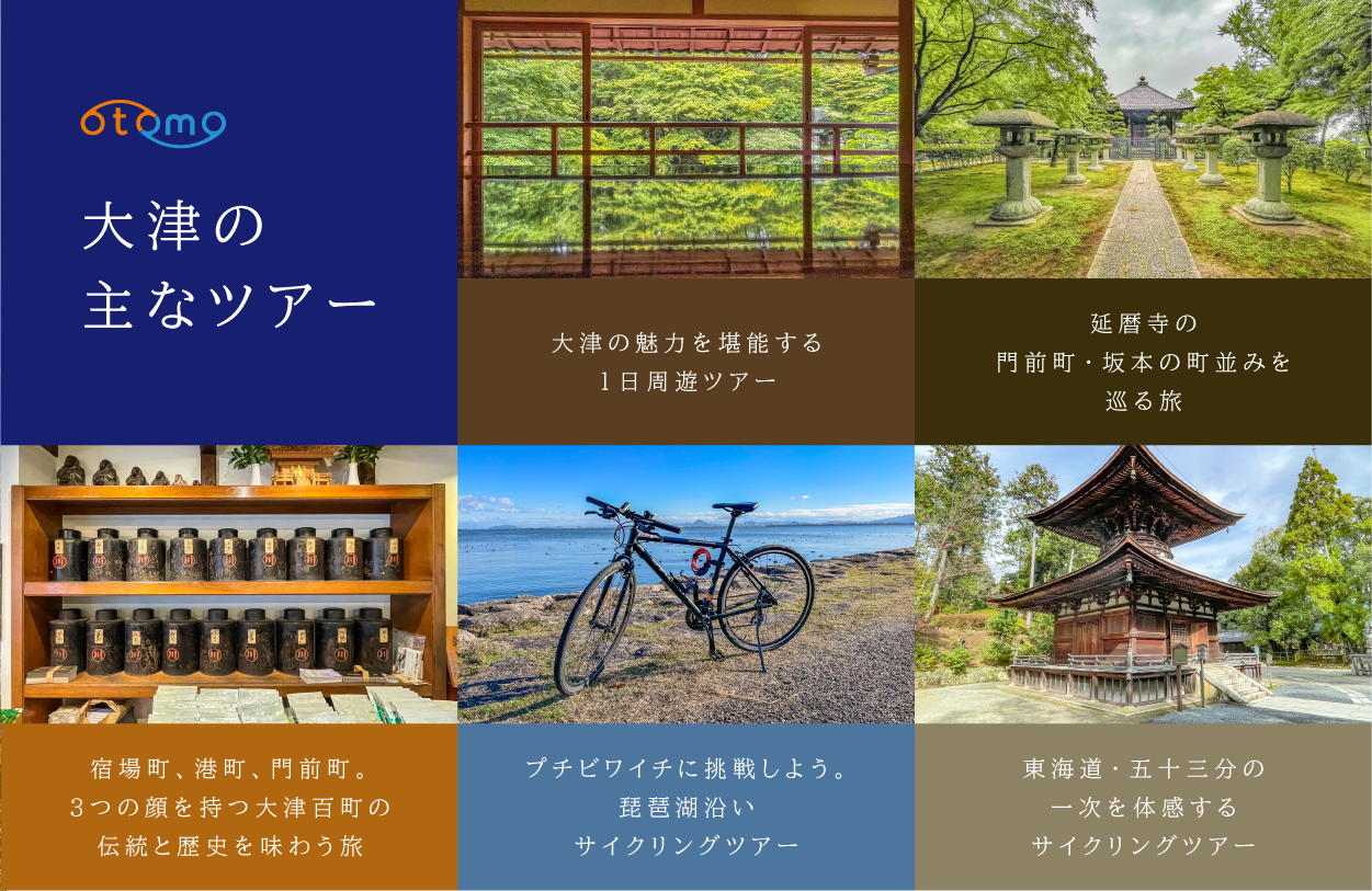 全国25都道府県でプライベートツアーサービスを展開するotomo株式会社(所在地:東京都千代田区/代表者:平塚 雄輝)は、公益社団法人びわ湖大津観光協会(所在地:滋賀県大津市/会長:平川 良浩)と連携協定を締結し、アフターコロナにおける旅行市場の本格的な回復に向けて、大津におけるガイドツアーサービスの基盤整備を共同で推進します。今後、大津においてガイドツアーをいつでも、どこでも、だれでも予約・利用できるよう、ガイド人材の育成やツアーコンテンツの充実、宿泊施設等の地域事業者と連携した予約・販売態勢の構築に取り組みます。大津が有する多様な観光資源とその背景にあるストーリーを、ガイドを通じて発信することで、旅行者の周遊・滞在を促し、観光振興を通じた地域の活性化を目指します。
