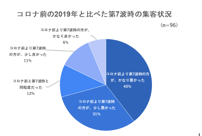2022年の夏は第7波の到来はあったものの、コロナ禍以降では初めて行動制限を伴わない夏休みでした。まずは、2022年7~8月の第7波時の集客状況について聞いた結果がこちらです。