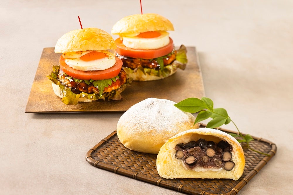 もちもちの生地に丹波の黒豆、求肥、粒あんを包んで焼き上げたあんぱんです。まるで大福をそのままパンにしたようなもちもち食感をお楽しみください。