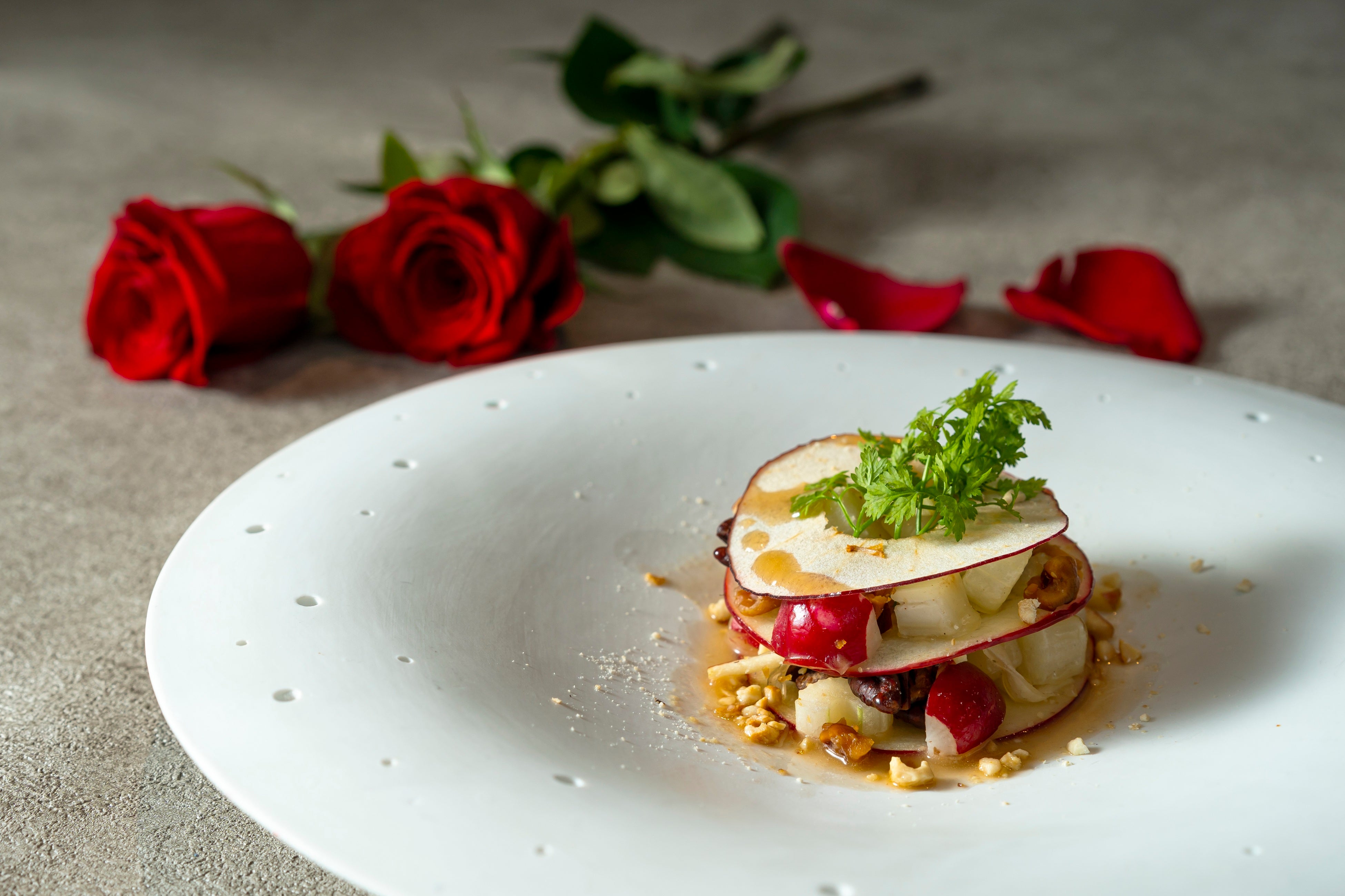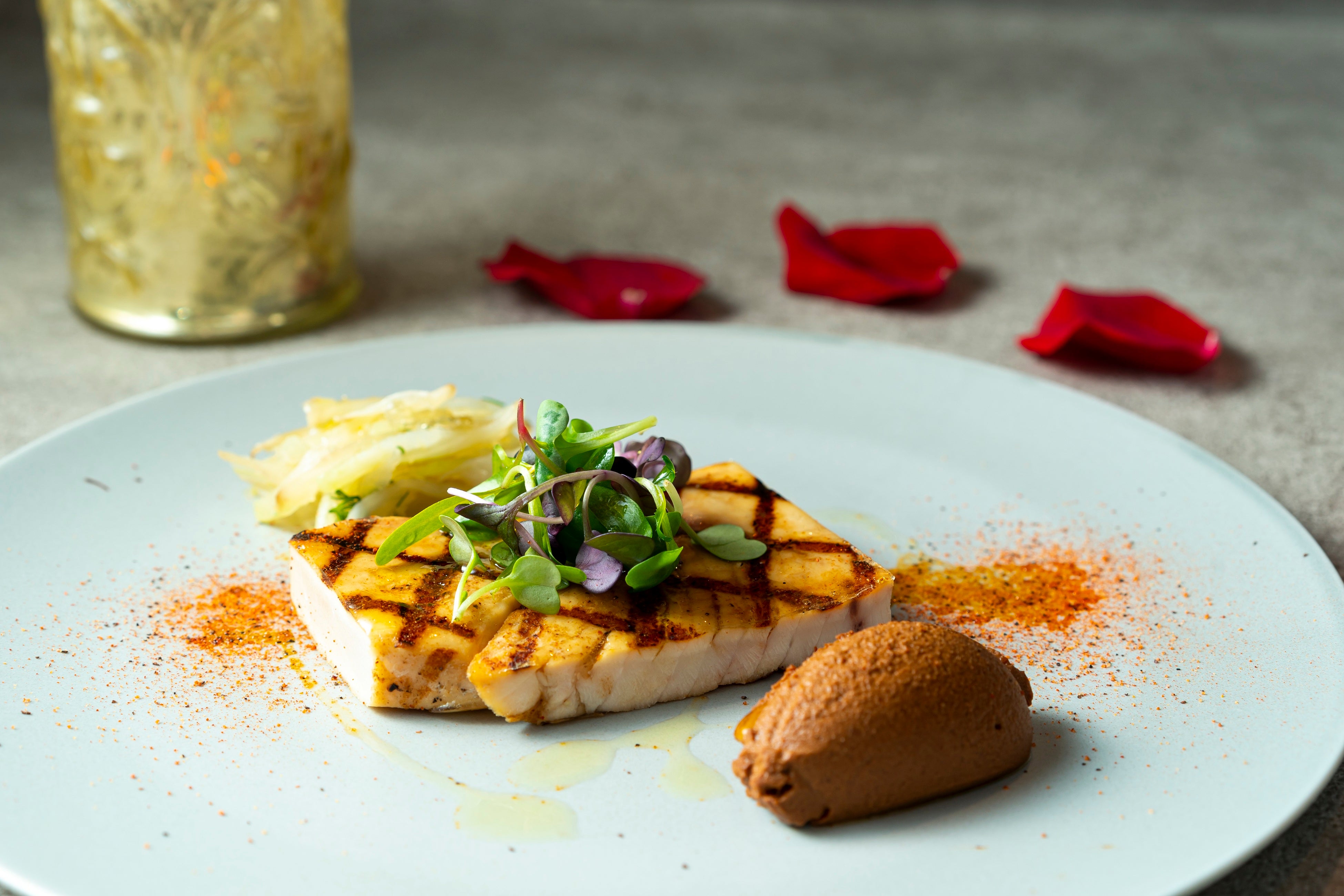 型にとらわれないボーダレスなメニューを提供するシェフならではの新感覚のグリルをご堪能ください。デザートには、希少な“カカオパルプ”(カカオ豆を包む白い果肉部分)のアイスを添えた、ルビーチョコレートのスモアをどうぞ。