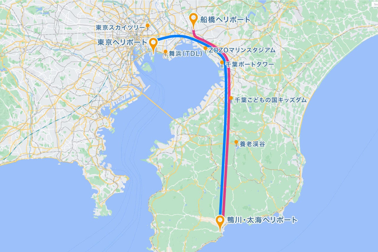 東京ヘリポート(船橋ヘリポート)⇄ 鴨川・太海ヘリポート