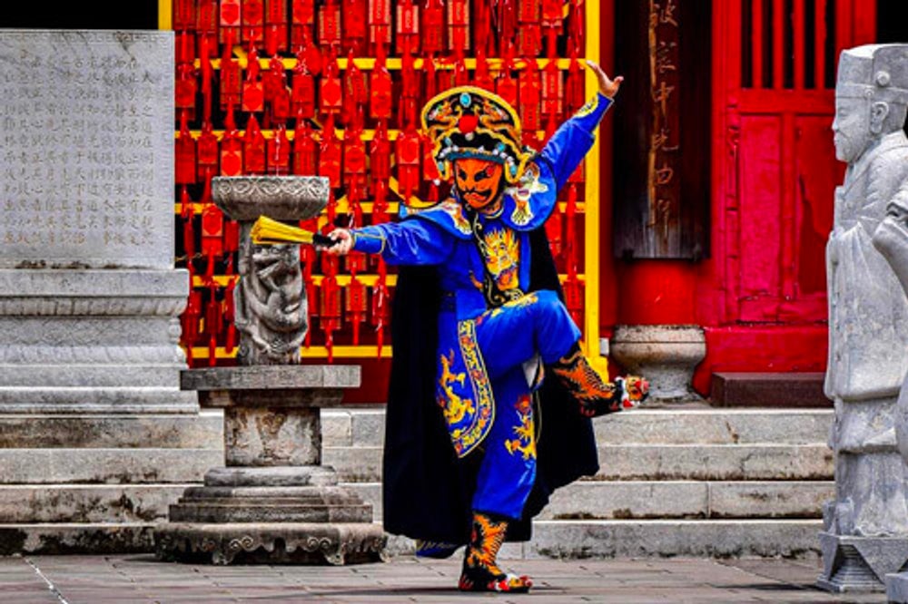 お面が瞬時に10数枚変わる、面一つ一つに喜怒哀楽を表す表情といつ変わるか解らないスピード感溢れる中国変面ショー。その時の面に応じた動きも見所の一つです。日本で変面を演じる演者は20数名。九州には5名しかいない中で、今回は 変面師の京介(キョウスケ)さんとテレビ番組「博士ちゃん」にも出演した国内最年少・ 小学生変面師のひなちゃんバージョンをお楽しみください。