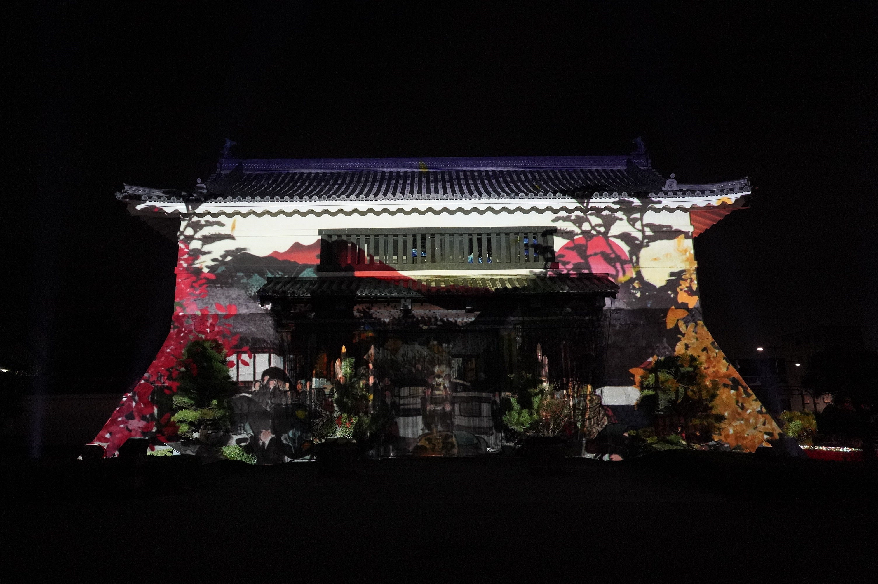 この催しは、徳川家康生誕の地・岡崎城の表玄関で幅16.4メートル・高さ11メートルの大手門に、岡崎市が誇る文化財などをモチーフとしたプロジェクションマッピング映像を投影するものです。開催に合わせて公式写真を公開しました。