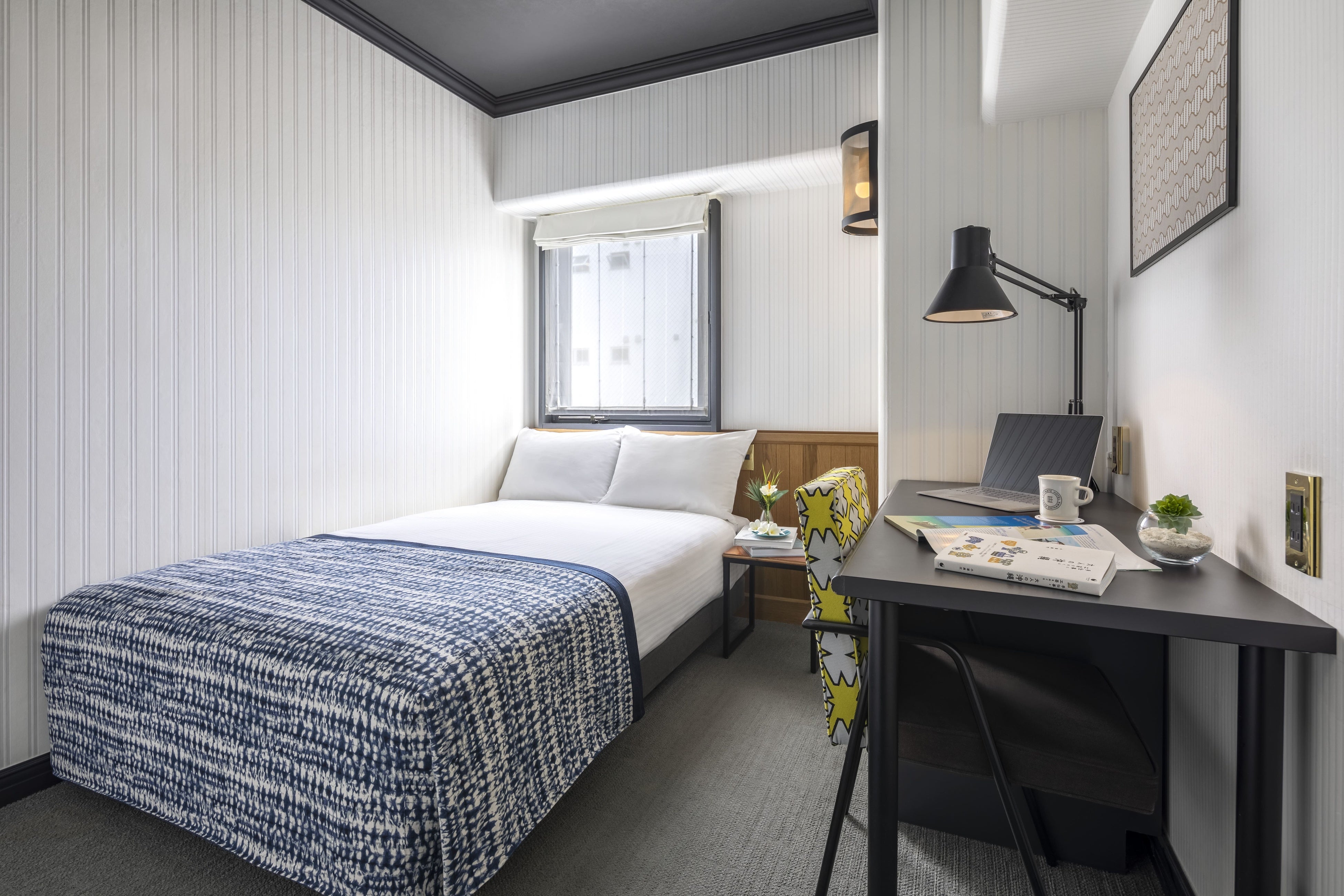 客室面積は12㎡とコンパクトですが、120cmワイドのサータ社製の寝心地抜群のセミダブルベッドに、 奥行き50cmのPCと資料を広げても十分に作業が可能なサイズのデスクがついています。ワーキングラウンジだけでなく、客室でも仕事や作業に集中できる環境をご用意しています。
