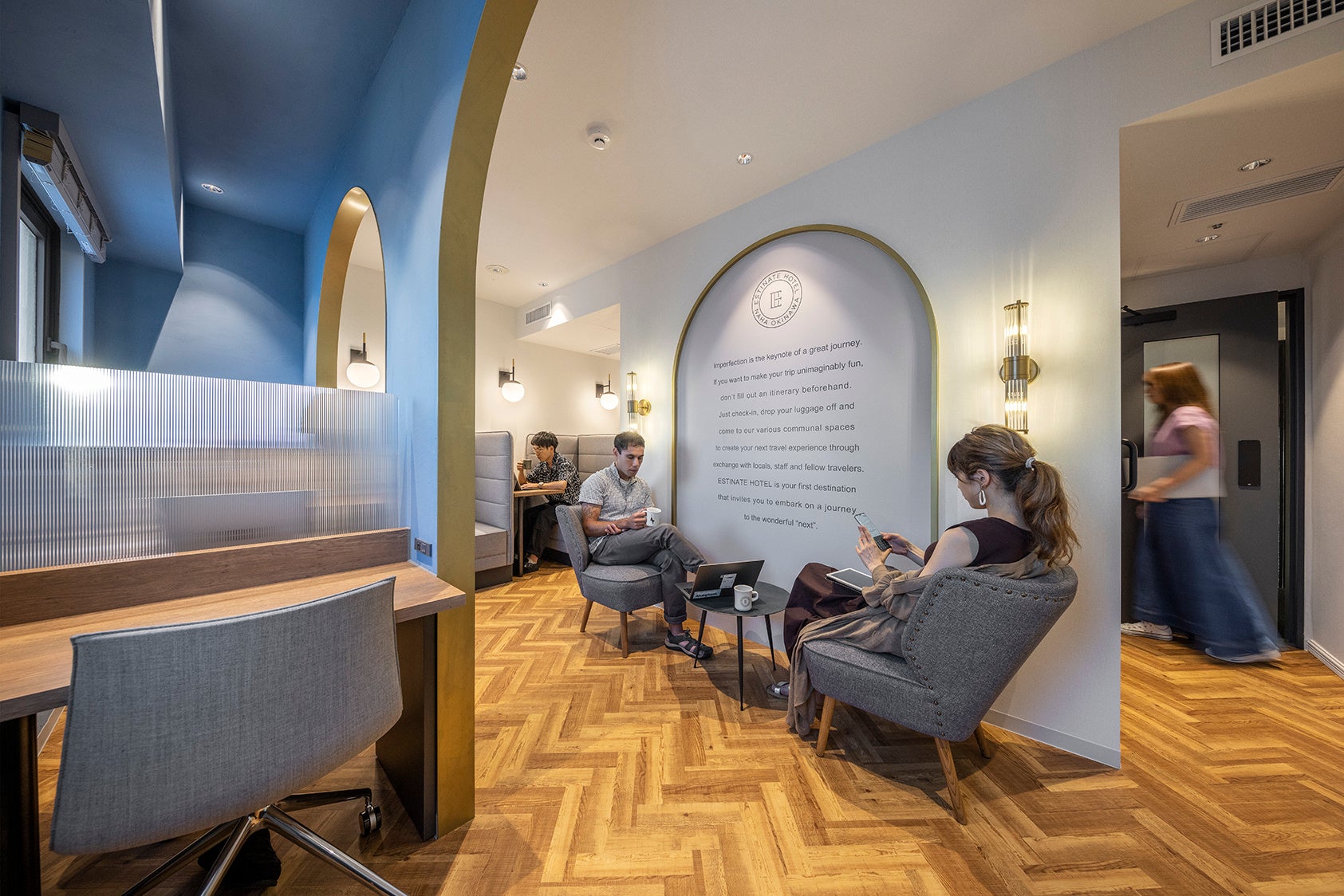 旅人とローカルが集うライフスタイルホテル。旅の行き先で必ず滞在するホテル。ESTINATE HOTEL 那覇は単なる目的地としての滞在場所ではなく、宿泊ゲスト、立ち寄るローカルなどホテルにアクセスする人々との情報交換によって新たな旅の行き先が決まる場所。ESTINATE という名称は「目的地―DESTINATION―」から頭文字のDをはずした ESTINATIONという造語を動詞に派生させて生まれました。不完全な旅の中にこそ様々な「次」が見える、そんな発見にあふれたホテルでありたいというコンセプトを DESTINATION からDを外すことで「不完全さ」を、そしてアルファベットでD の「次」に来る E が新たに頭文字として顔をだすことで「“次の発見”」を表現しました。