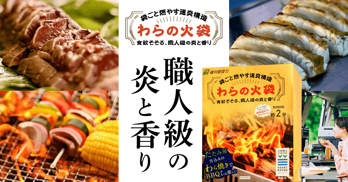 細川製畳株式会社(本社:宮城県遠田郡涌谷町、代表取締役社長:細川康浩)は、セルフ藁焼きで、誰でも簡単に純和風BBQが楽しめる新商品「わらの火袋」を開発しました。