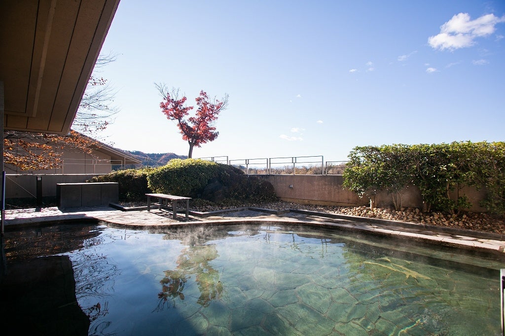 グランピング宿泊のお客様はヘルシーパル赤城本館の大浴場と、利根川と榛名山の雄大な姿を一望する絶景の露天風呂で天然温泉をお楽しみ頂けます。
