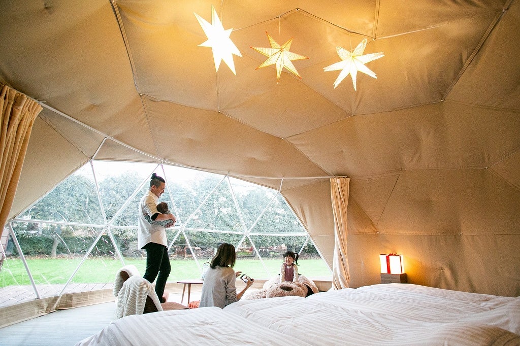 三密回避で、新たな体験型宿泊施設として認知されたグランピング施設と、古き良きおもてなしサービスを誇る旅館・ホテルを掛け合わせた新しいスタイルのグランピング施設を全国各地に展開しています。